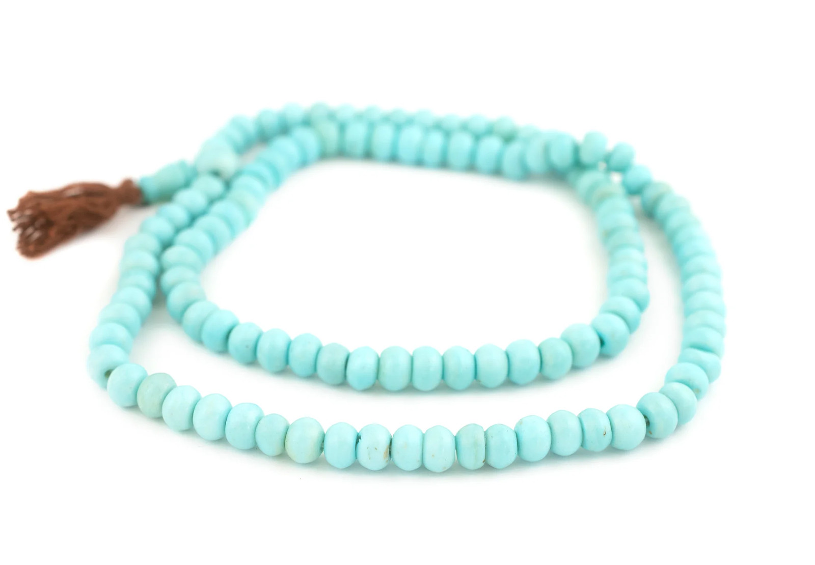 Electric Blue Bone Mala Beads 8mm Nepal Round Large Hole 27 Inch Strand