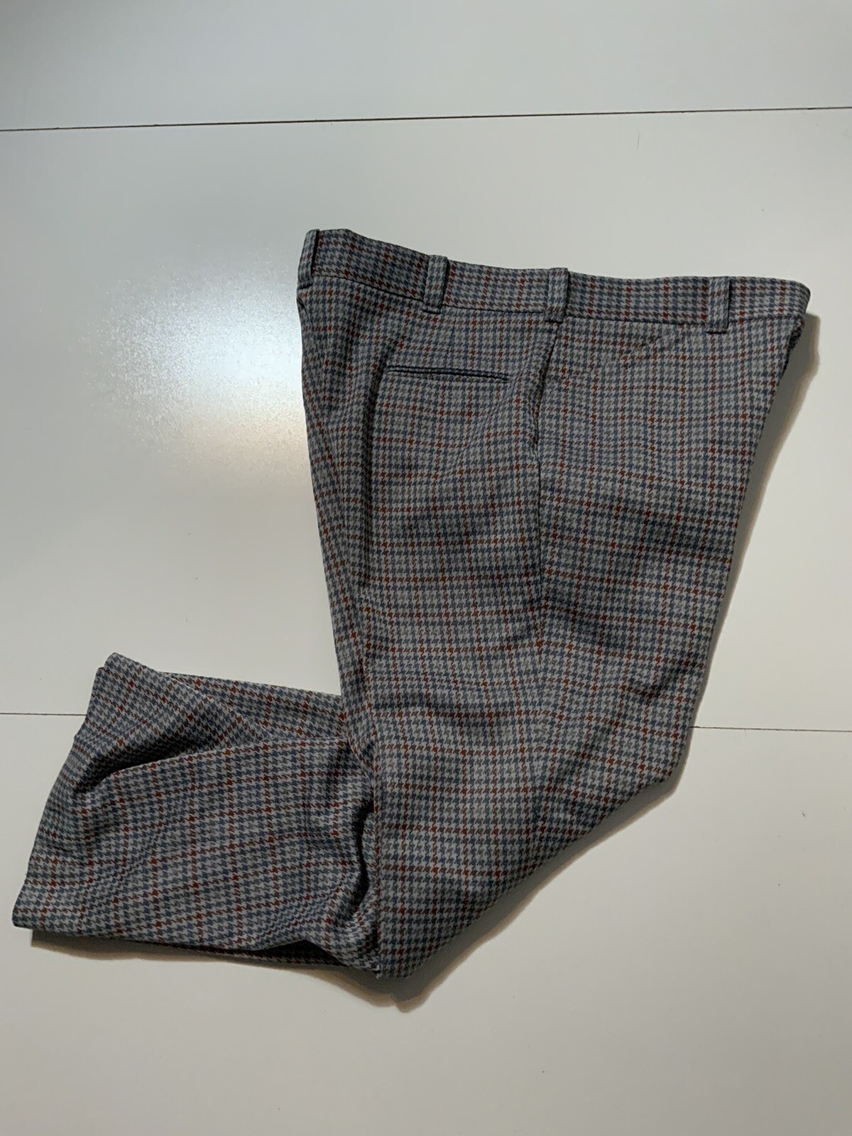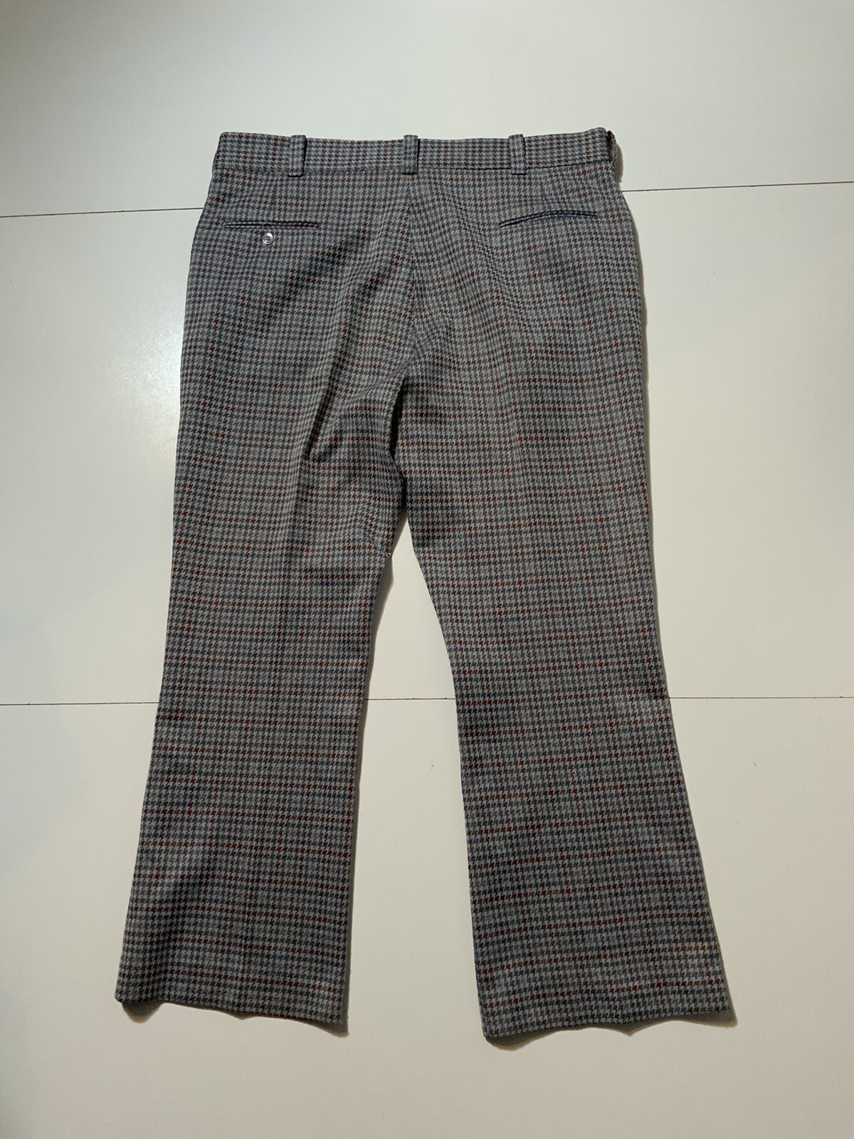 как выглядит Vintage 70s Double Knit Polyester Houndstooth Disco Flare Leisure Slacks Pants фото