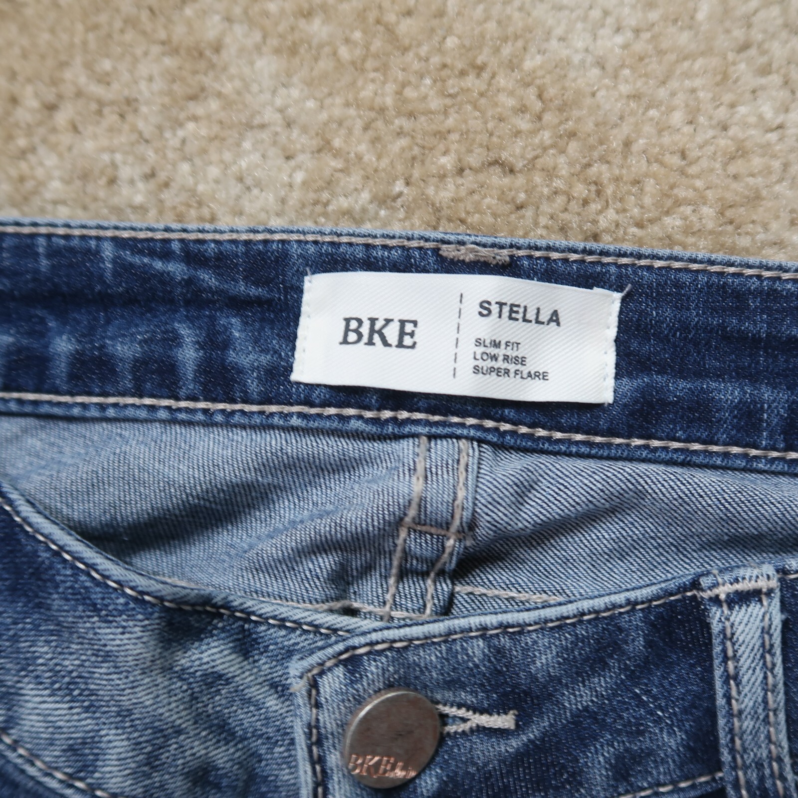 как выглядит BKE Stella Slim Low Super Flare Jeans Womens 32x31.5 Blue Denim Pants Stretch фото