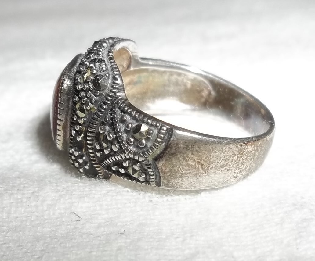 как выглядит Vintage Sterling Silver Marcasite Carnelian Ring Size 5 4.8 grams фото