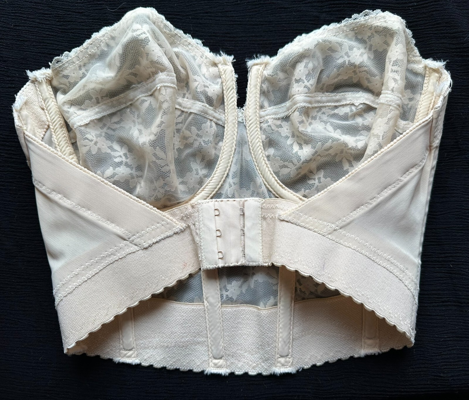 как выглядит Vintage BACKLESS YOUNG SMOOTHIES Strapless Long Bra Lace Beige Size 34D READ фото