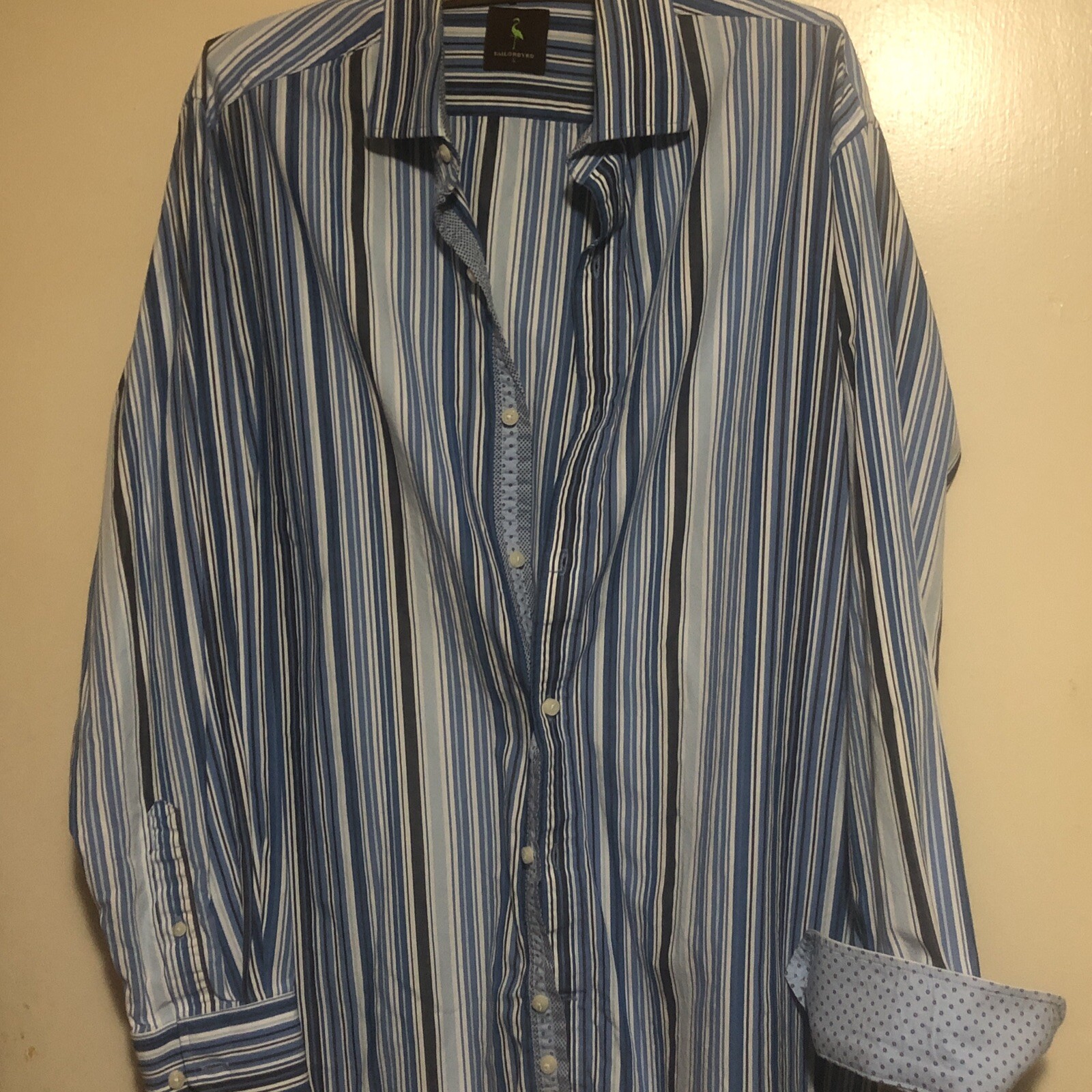 как выглядит TaylorByrd SHIRT Mens LARGE Blue STRIPE Button Up Flip Cuff CLASSIC фото