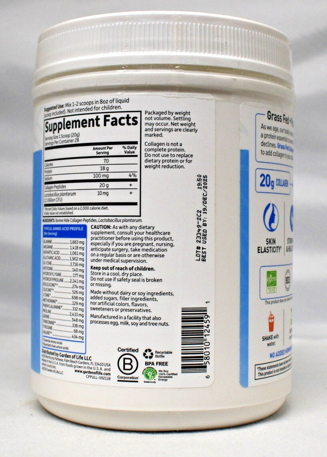 Grass Fed Collagen Peptides Garden of Life 560 g 19.75 oz Unflavored 28 servings
