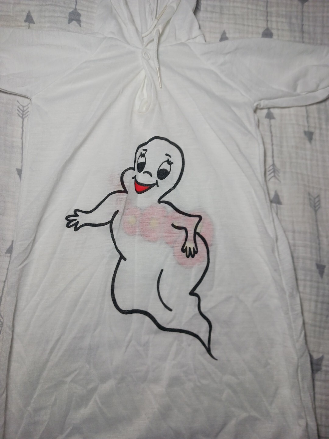 Vintage Baby Nightie Hoodie Kids Size Med 12-16lbs Halloween Ghost BOO White