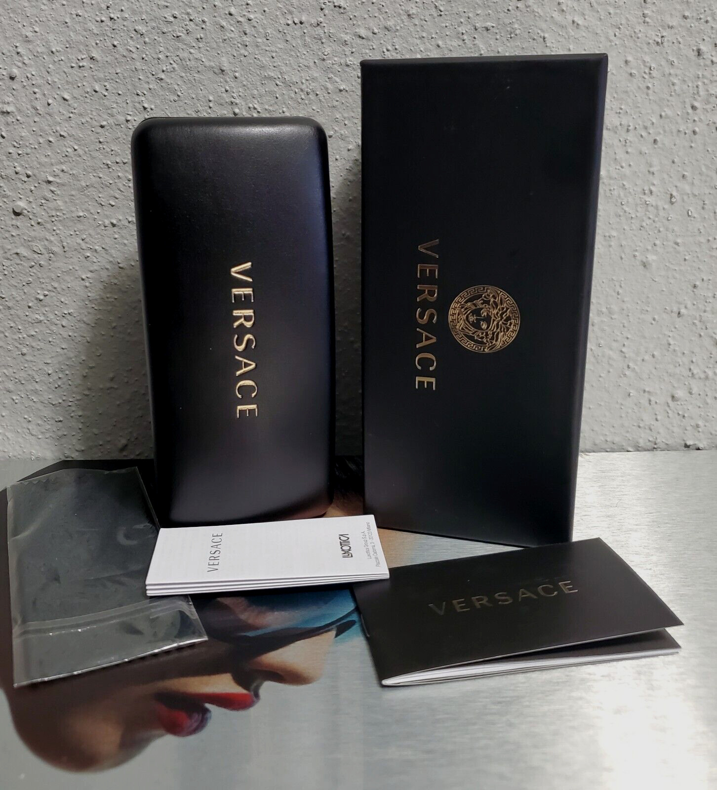 VERSACE BLACK LEATHER CLAMSHELL LARGE SUNGLASSES CASE CLOTH BOOKLET BOX