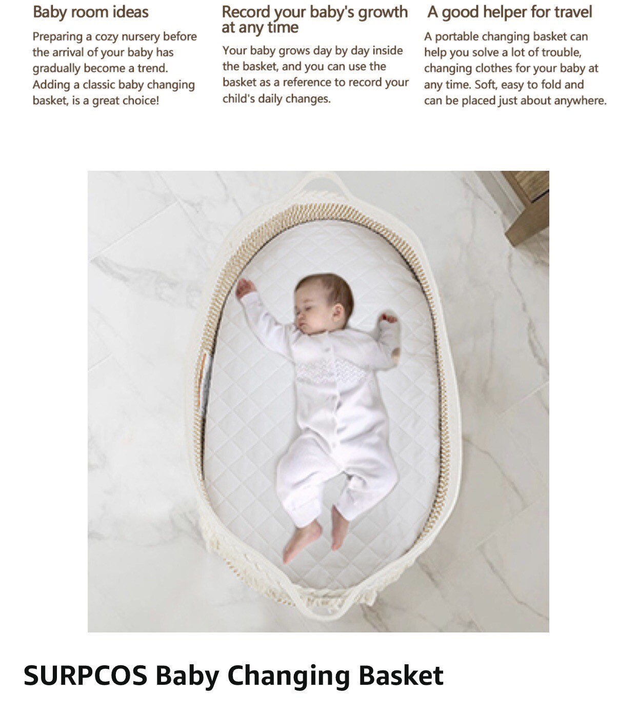 New Baby Changing Basket with Pads and Safety Belt, Woven Cotton