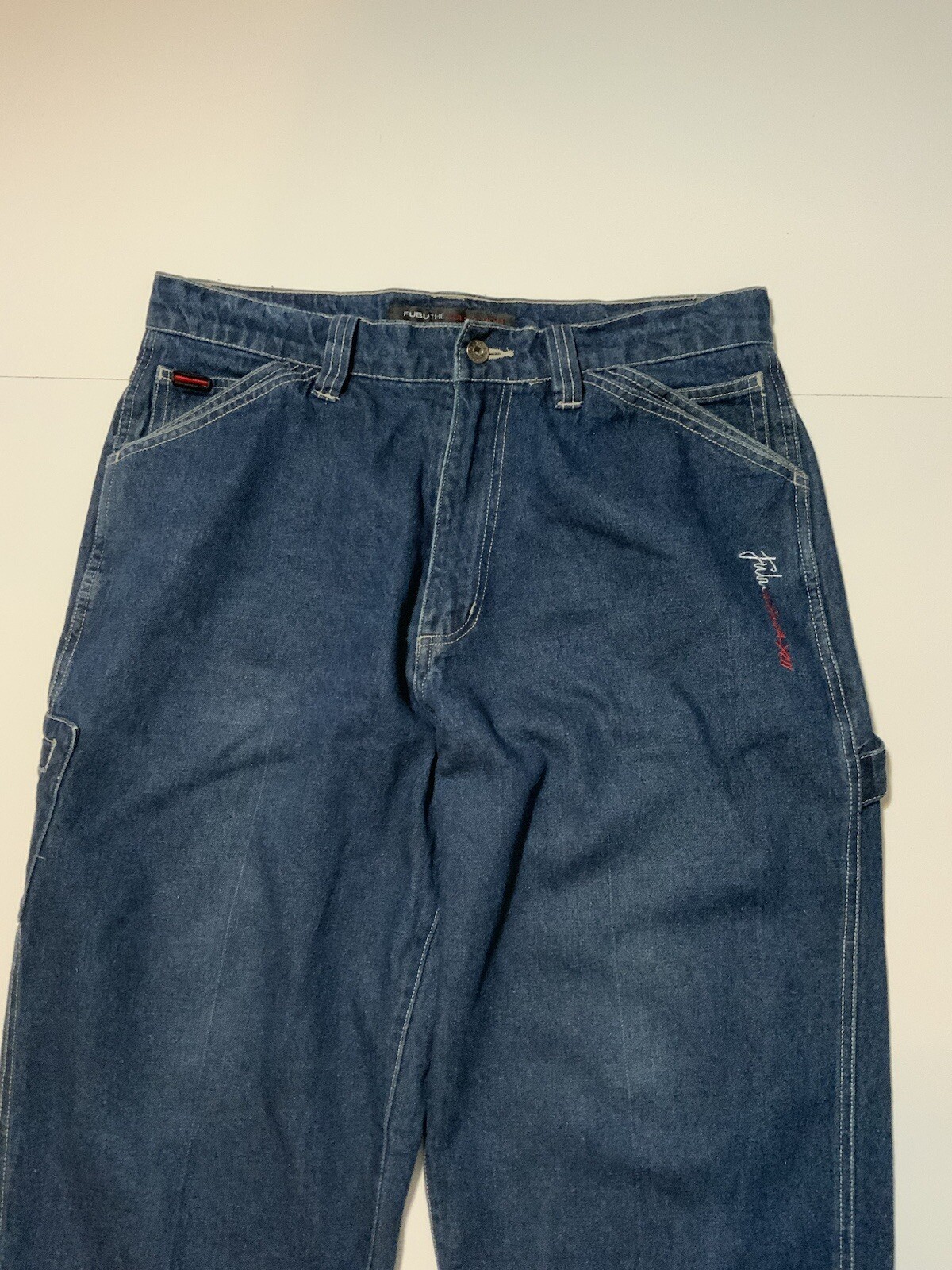 как выглядит Vintage 90s 2000s Y2K Fubu The Collection Utility Carpenter Baggy Denim Jeans 34 фото
