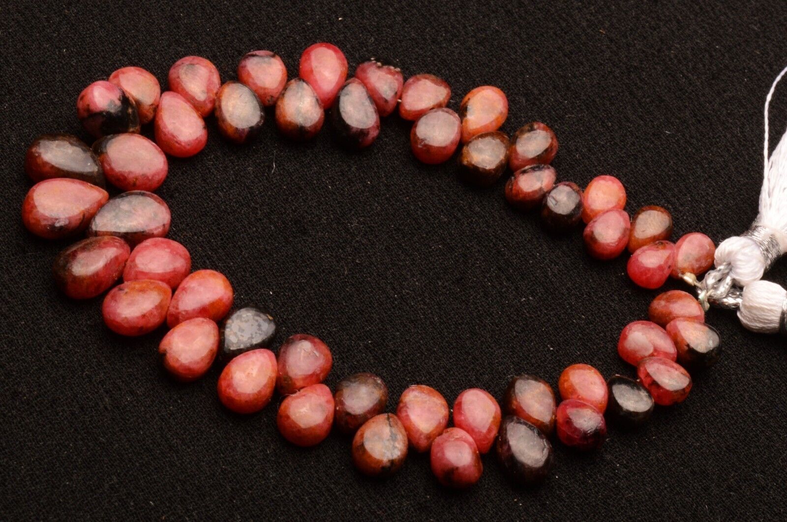как выглядит Natural Gem Rhodonite 7x5 to 10x7 mm Size Smooth Pear Beads 7.5" Strand 116Cts. фото