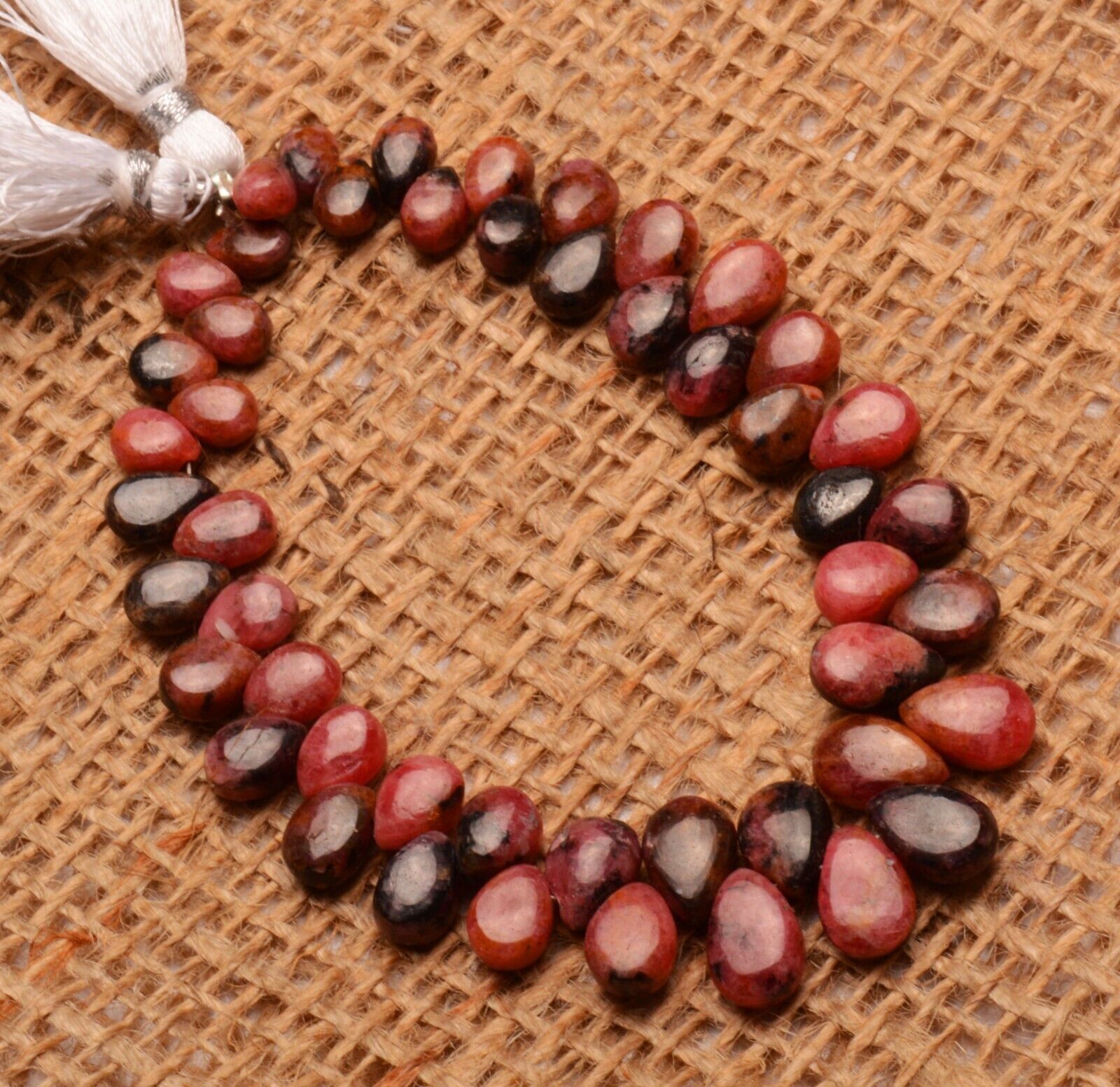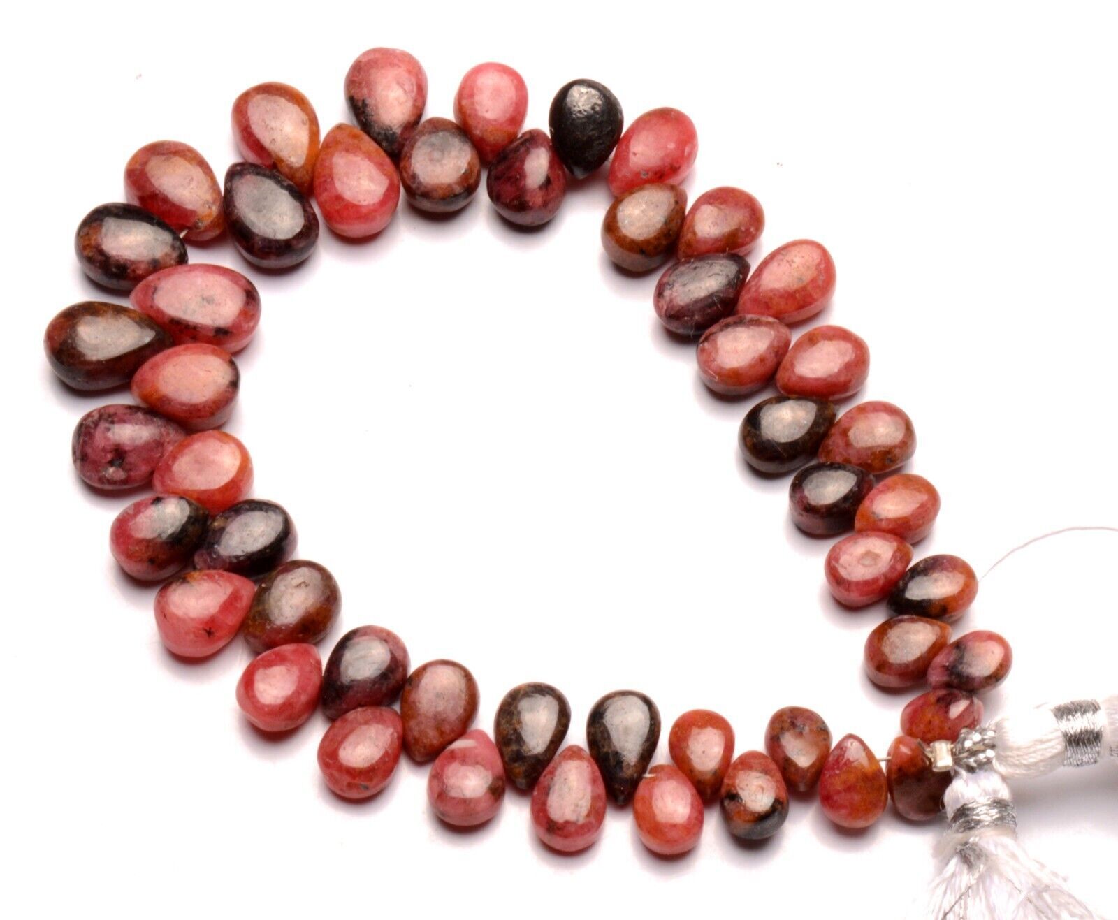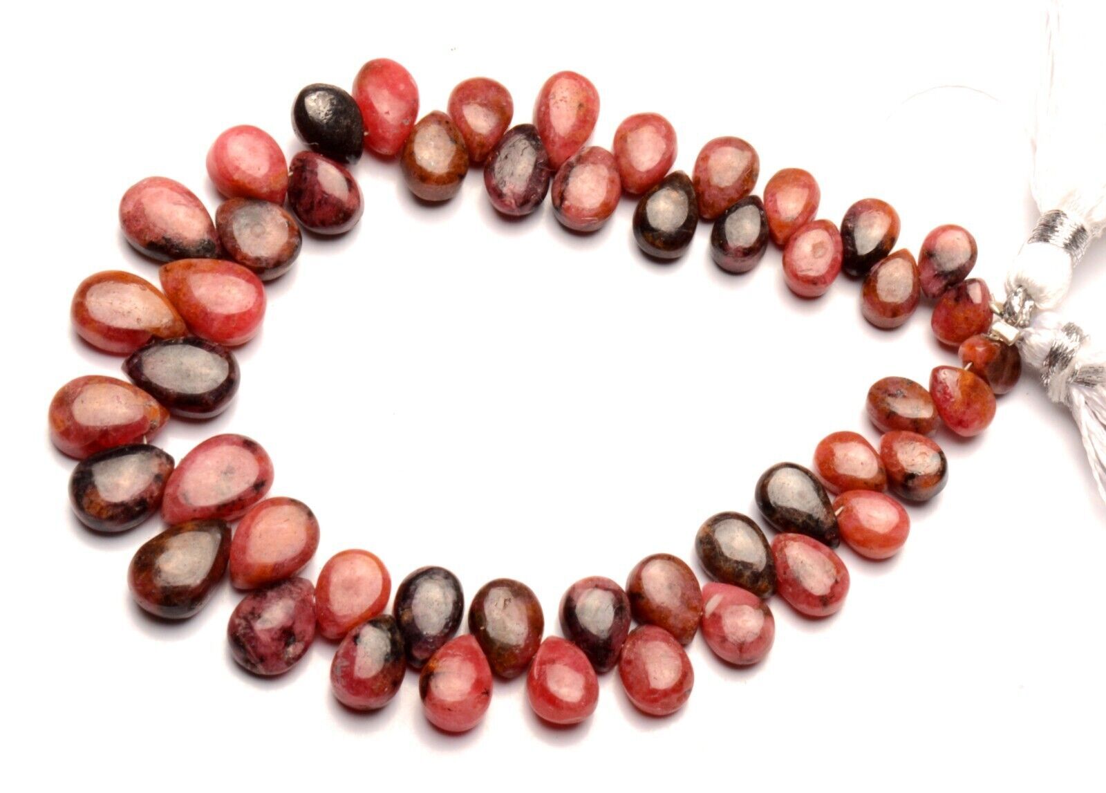 как выглядит Natural Gem Rhodonite 7x5 to 10x7 mm Size Smooth Pear Beads 7.5" Strand 119Cts. фото