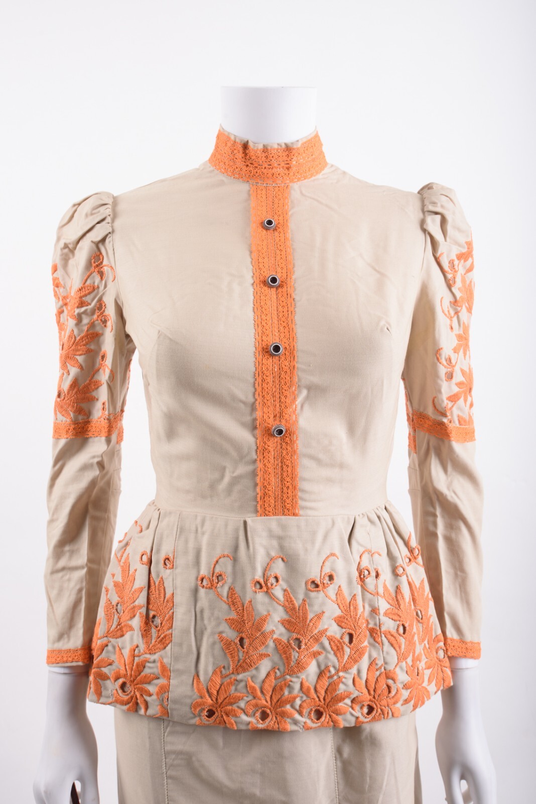 как выглядит Vintage 70s Womens Embroidered Shirt Midi Skirt Set XS Tan Orange w/ purse фото