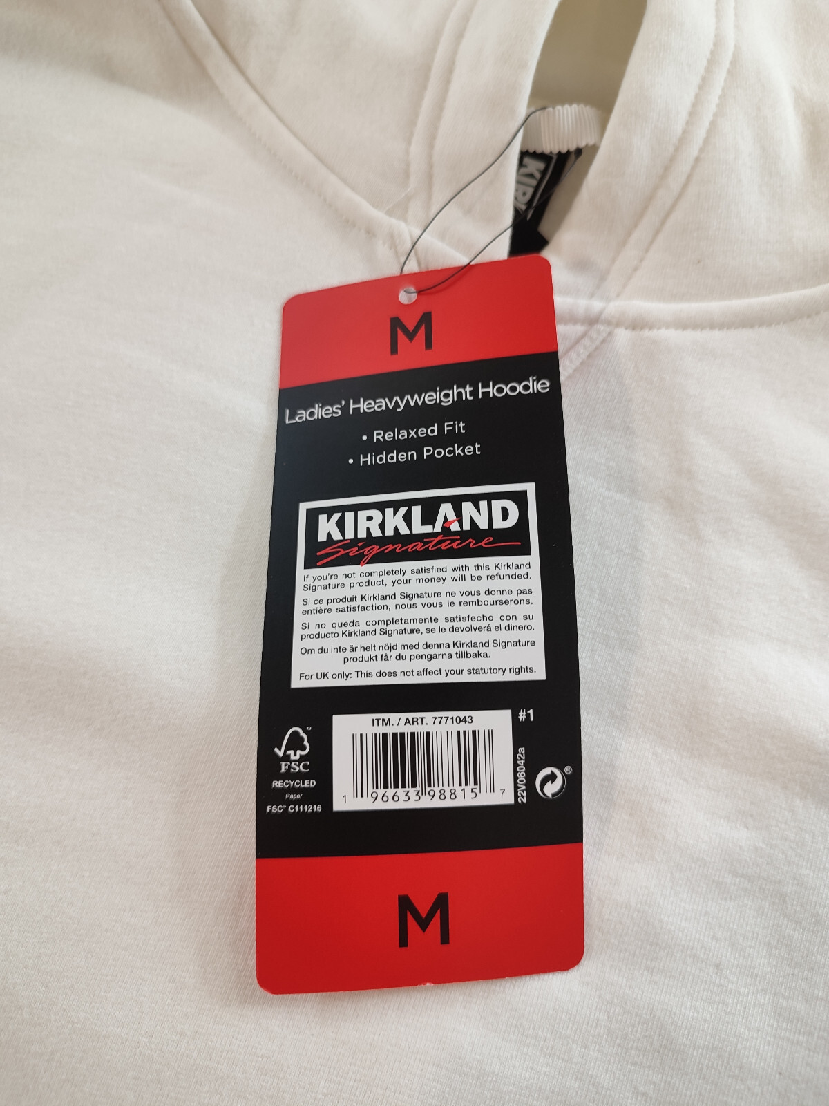как выглядит Kirkland Signature Womens Heavyweight Fleece Hoodie Relaxed Fit Medium White фото