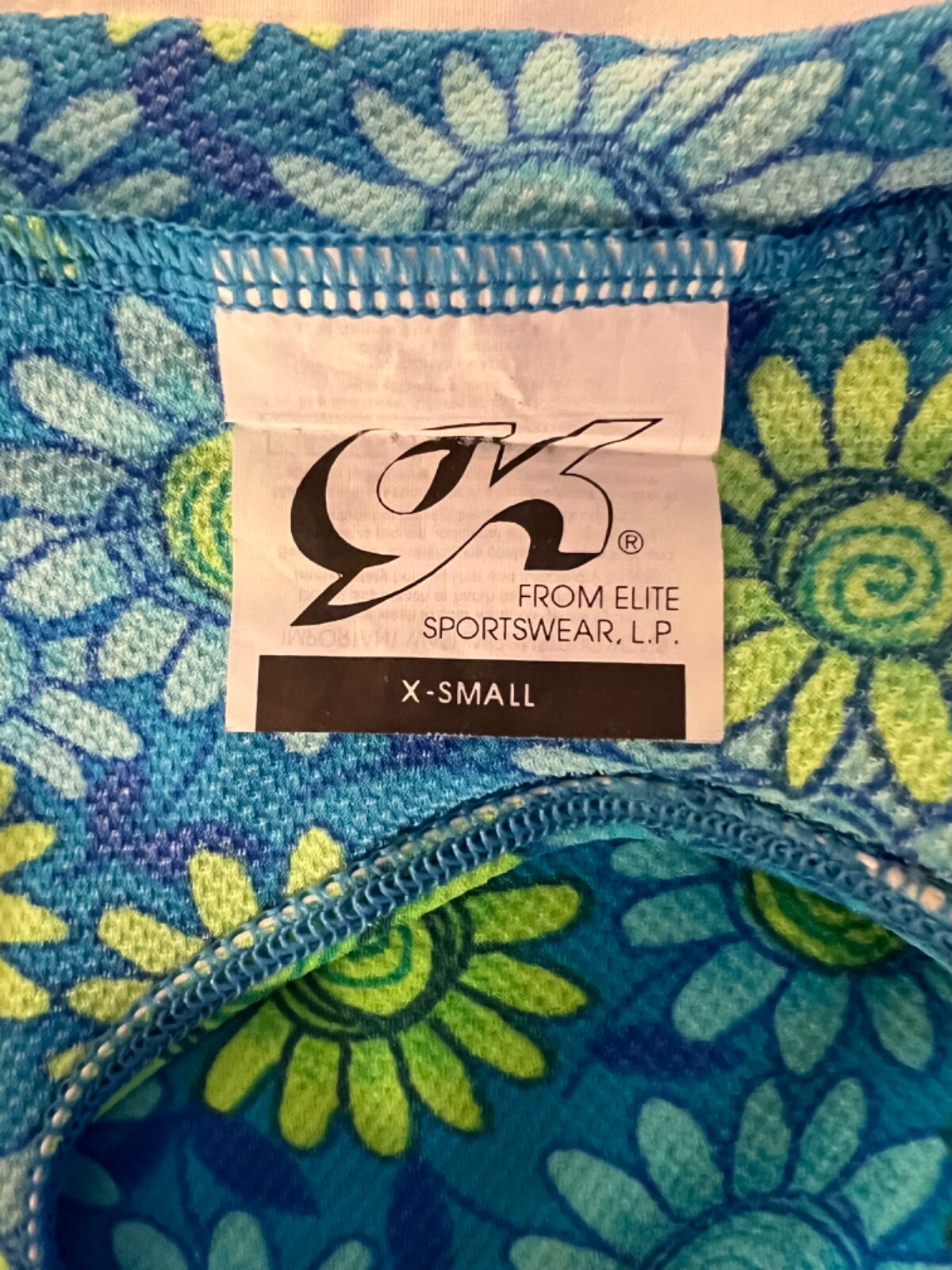 GK DAISY PRINT CHILD X-SMALL BLUE GREEN COTTON/SPANDEX GYMNASTIC TANK LEOTARD XS