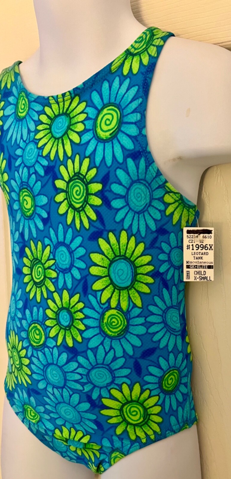 как выглядит GK DAISY PRINT CHILD X-SMALL BLUE GREEN COTTON/SPANDEX GYMNASTIC TANK LEOTARD XS фото