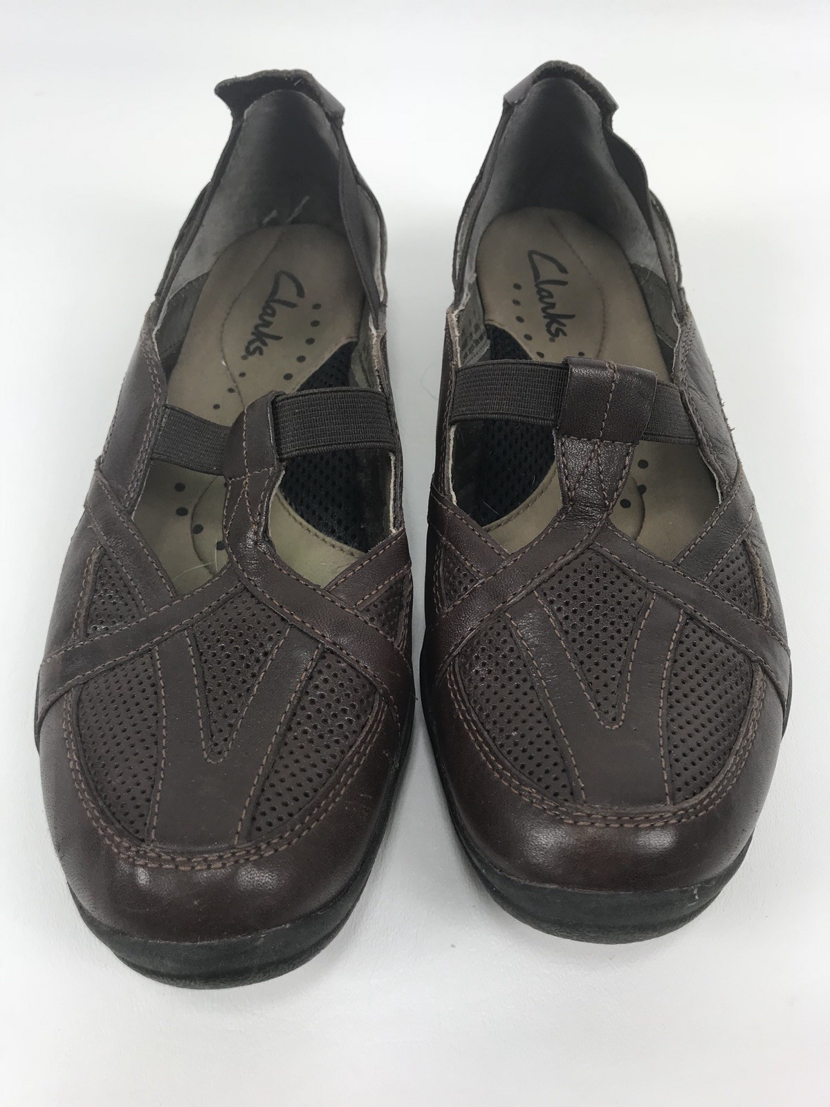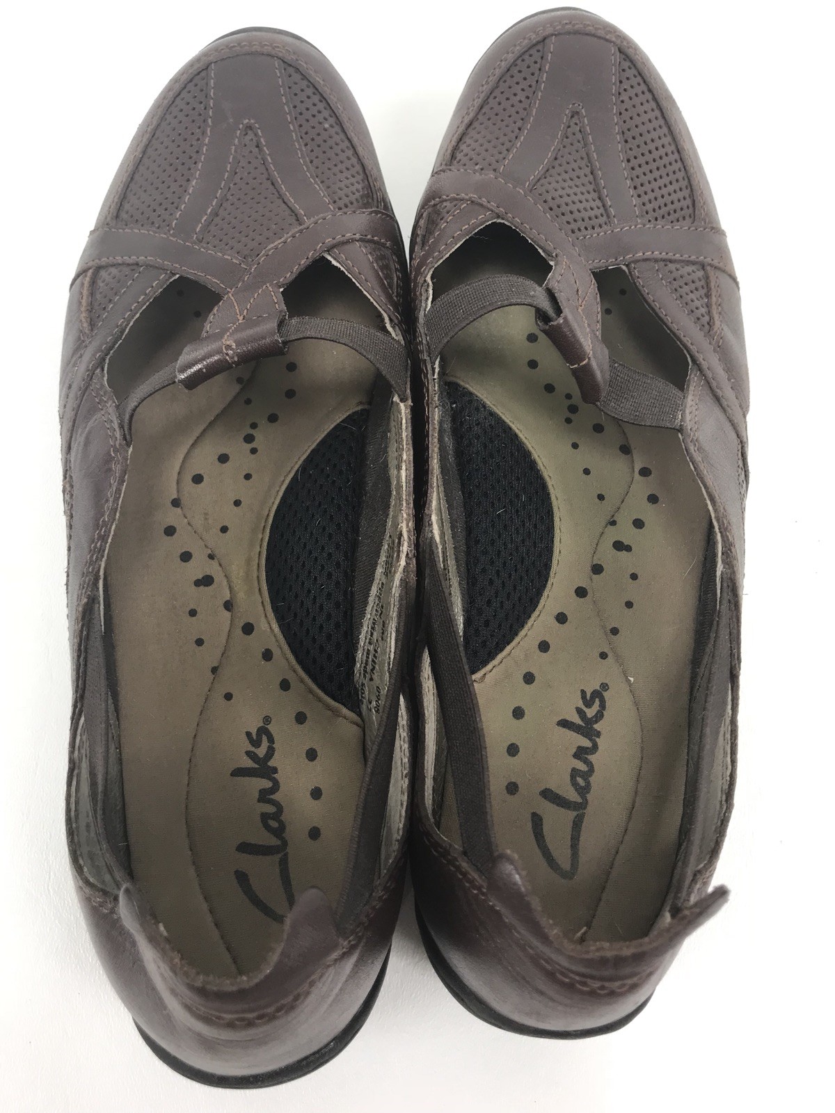 Clarks Slip On Loafers Comfort Shoes Brown Leather Womens Size 8M 86792