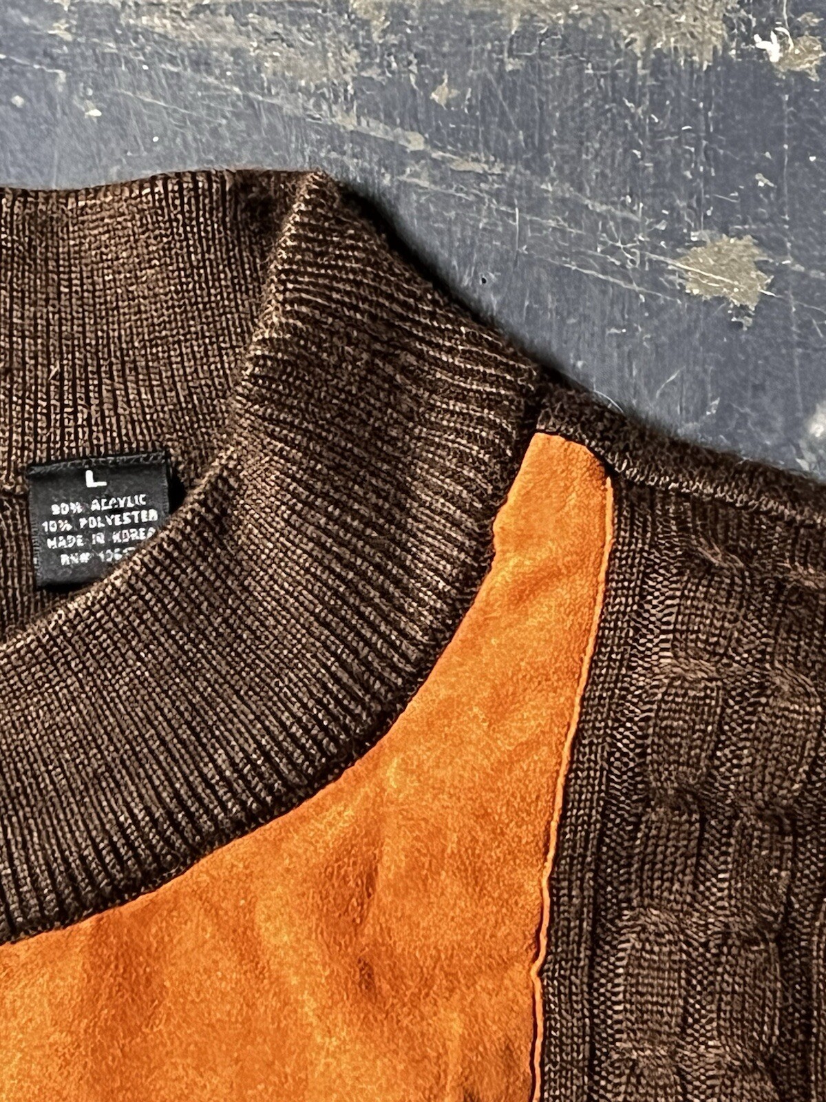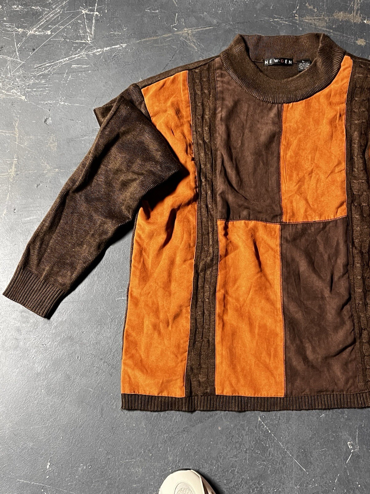 Vintage LV Style Brown Wool Orange Suede Mock Crewneck