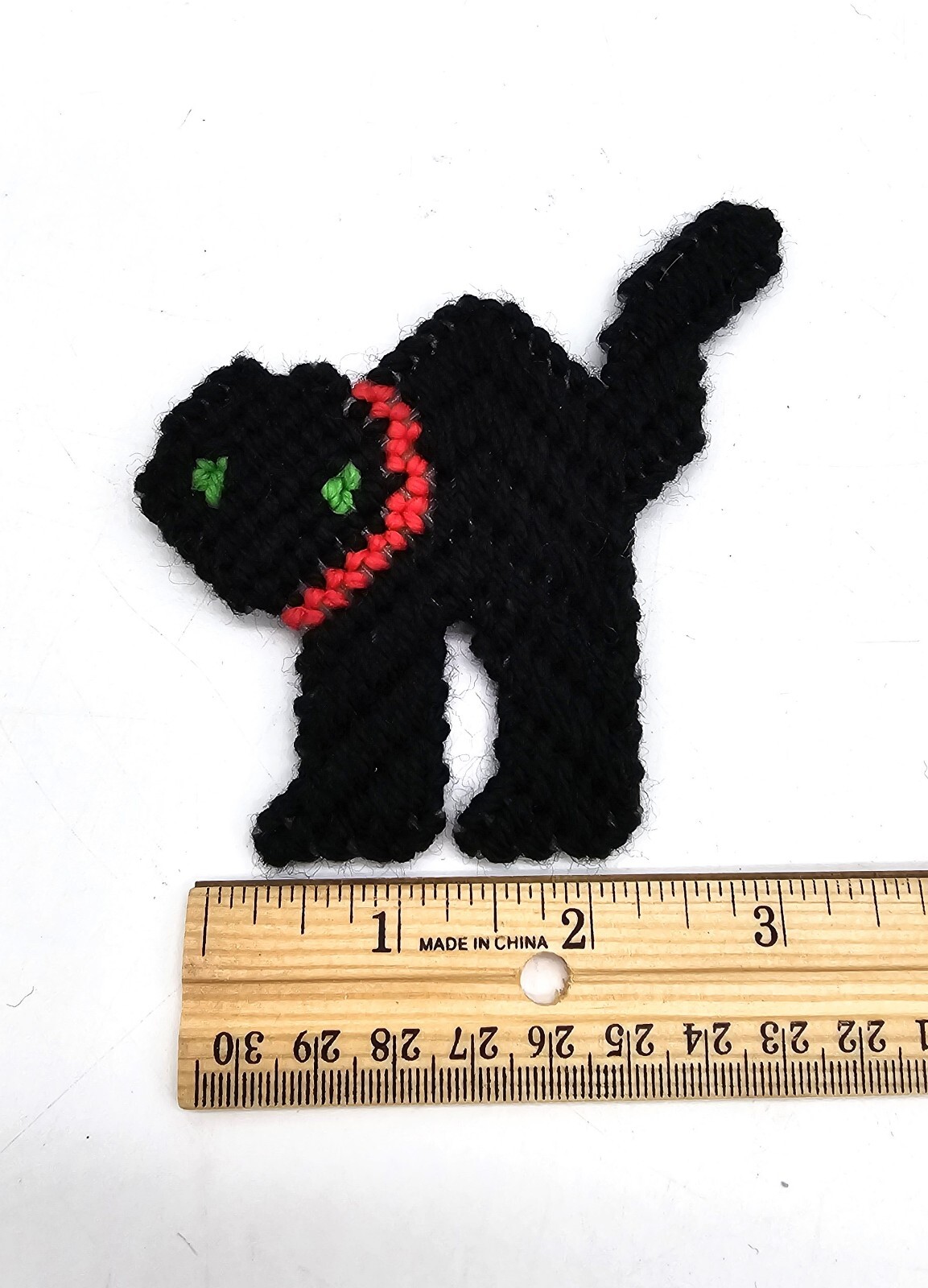 Vintage Needlepoint On Canvas Halloween Jack-O-Lantern Lantern Black Cat