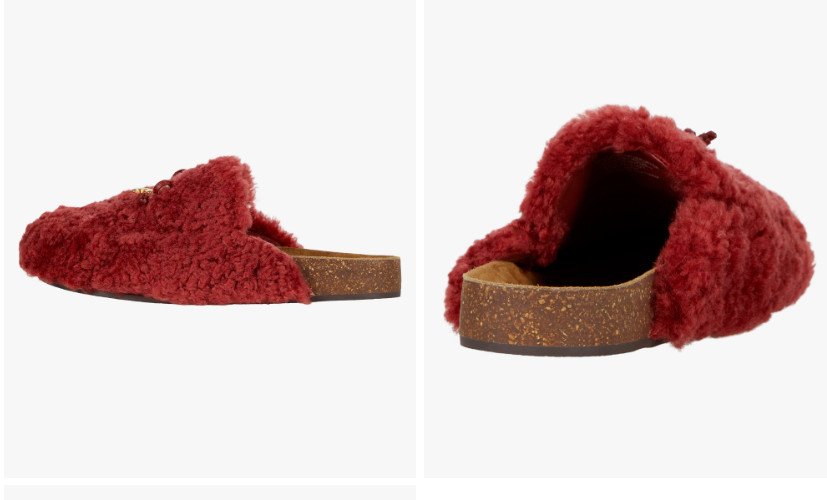 как выглядит Tory Burch T Charm Mammouth Mule Smoked Paprika Sheep Fur Natural Cork Size 10.5 фото