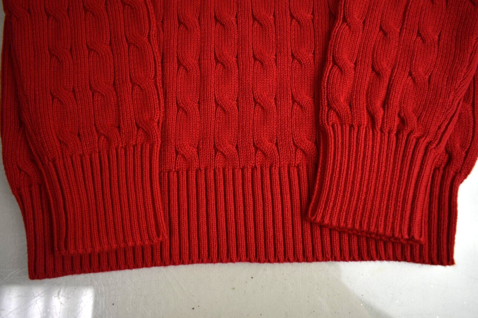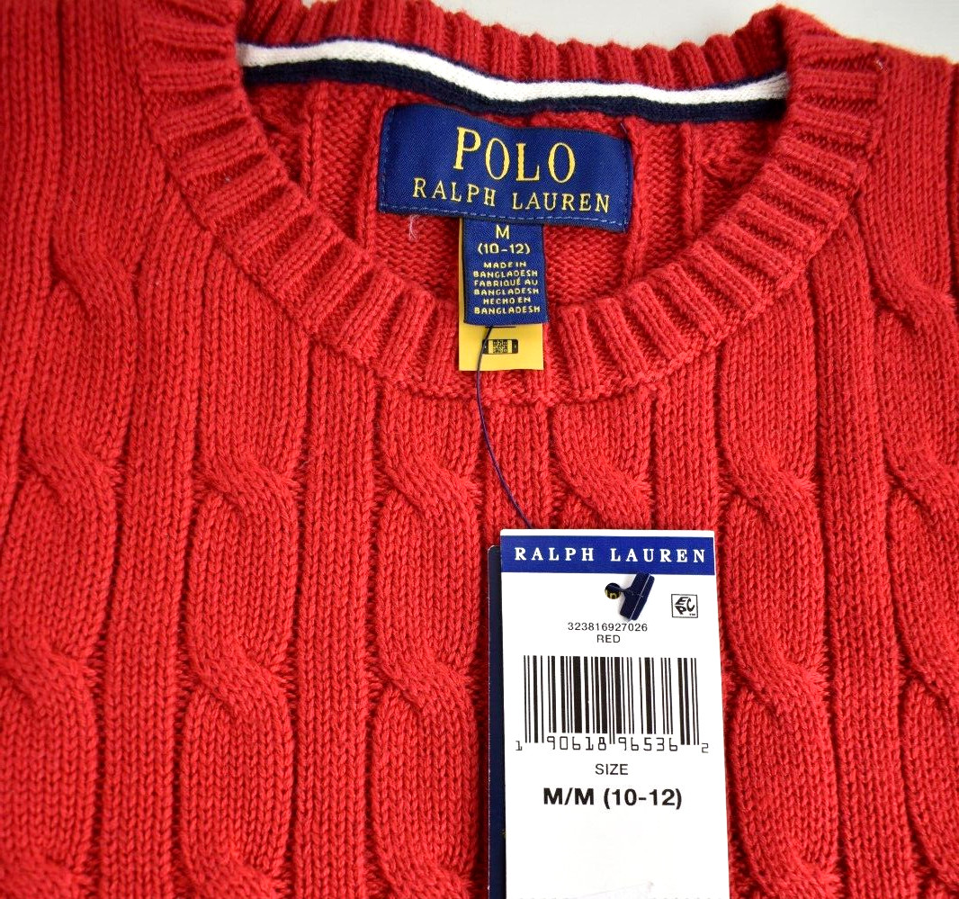 NEW Polo Ralph Lauren Boys Cable Knit Cotton Red Sweater Navy Pony M Ladies XS