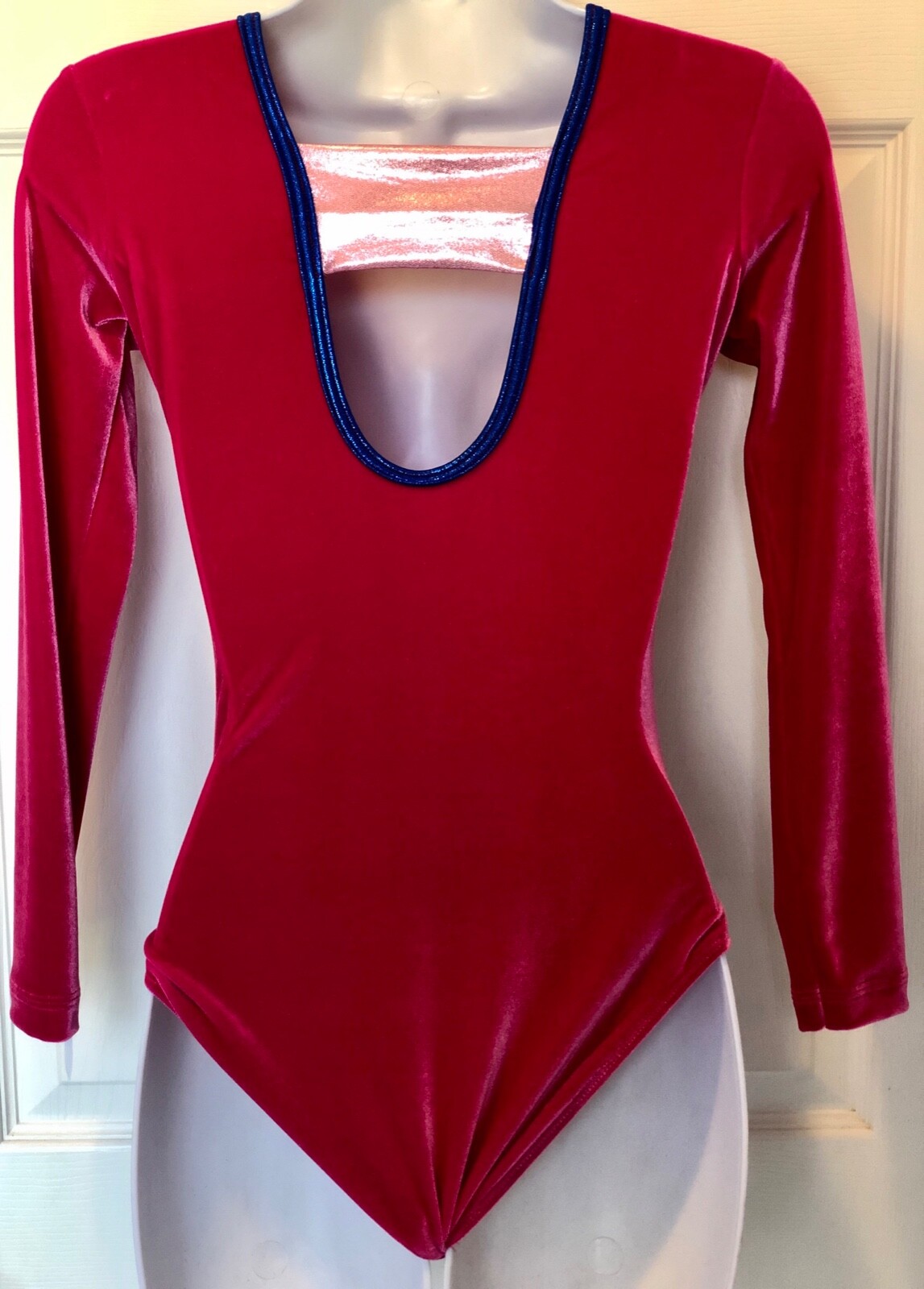 GK ELITE LgSlv LADIES SMALL BERRY VELVET GYMNASTICS DANCE CHEER LEOTARD AS NWT