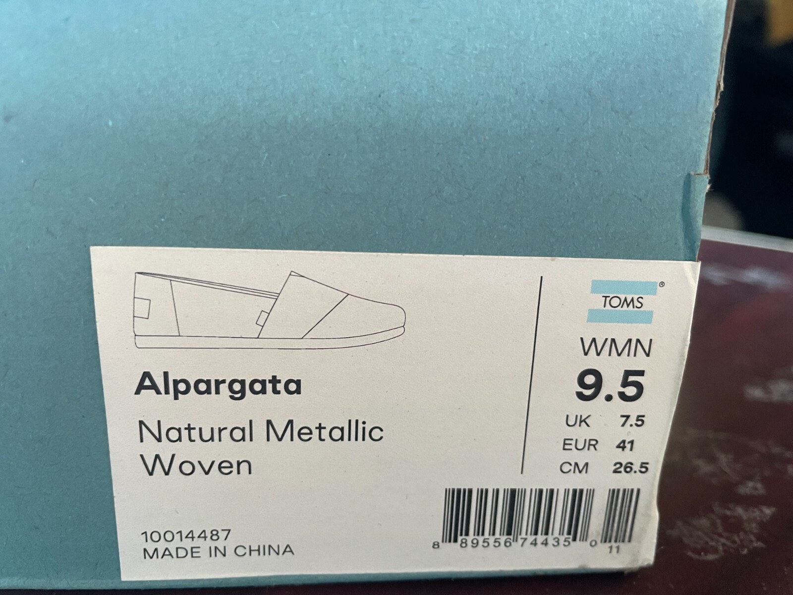 TOMS Alpargata Slip-On SHOE IN NATURAL METALLIC WOMENS SIZE 9.5 NEW