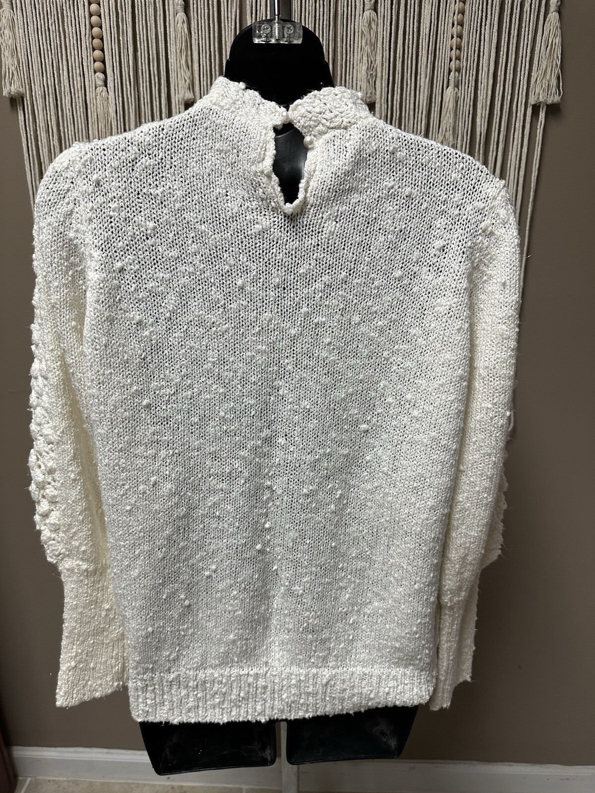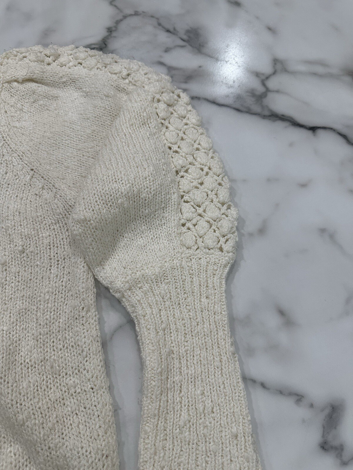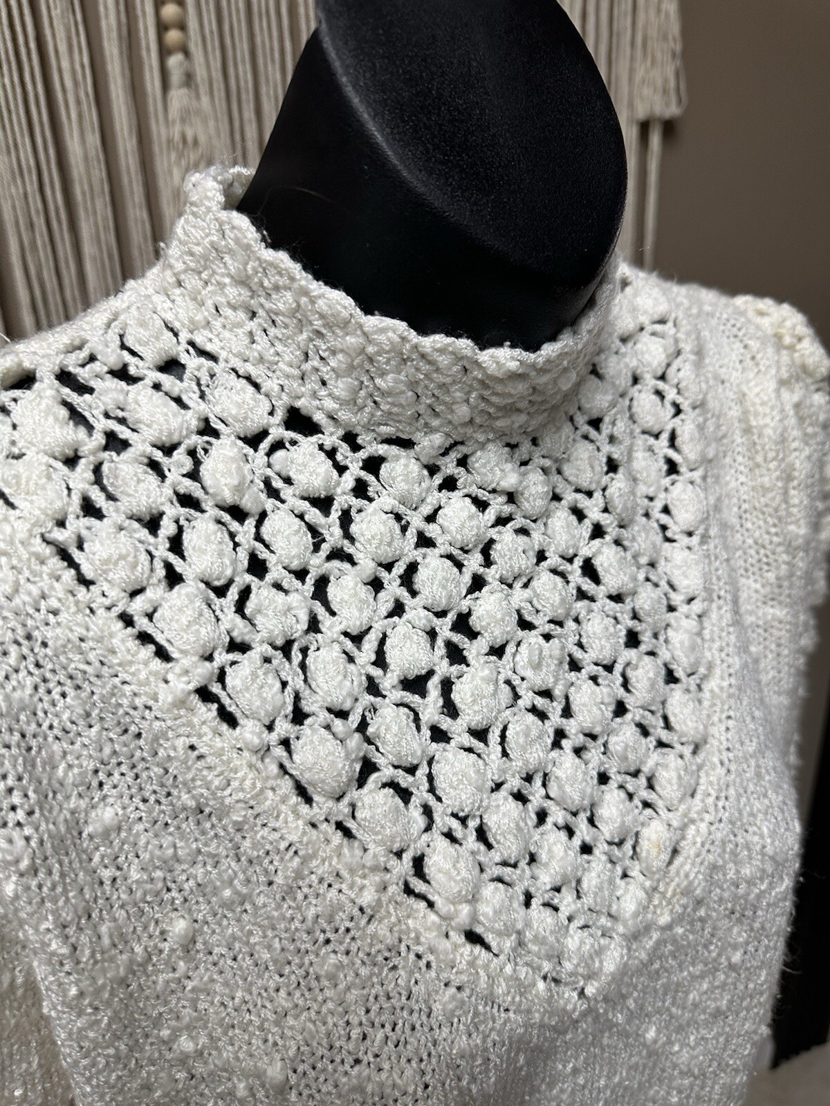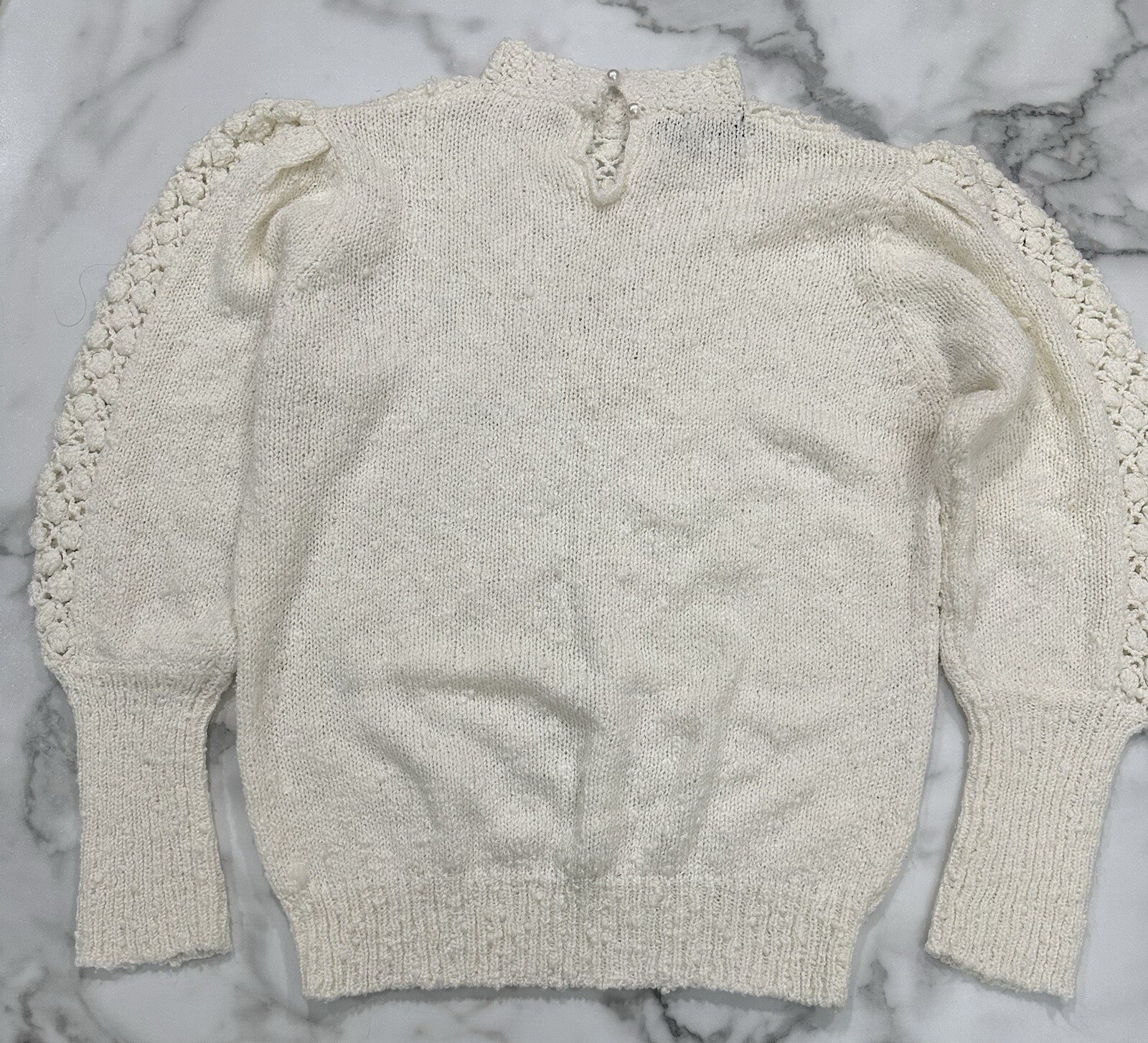 как выглядит Vtg 80s Leroy Crochet Knit Massive Detail Puff Balls Off White Sweater Women L фото