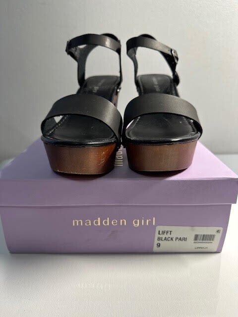 Madden Girl Women's Black Strappy Wedge Sandals Size 9 platform