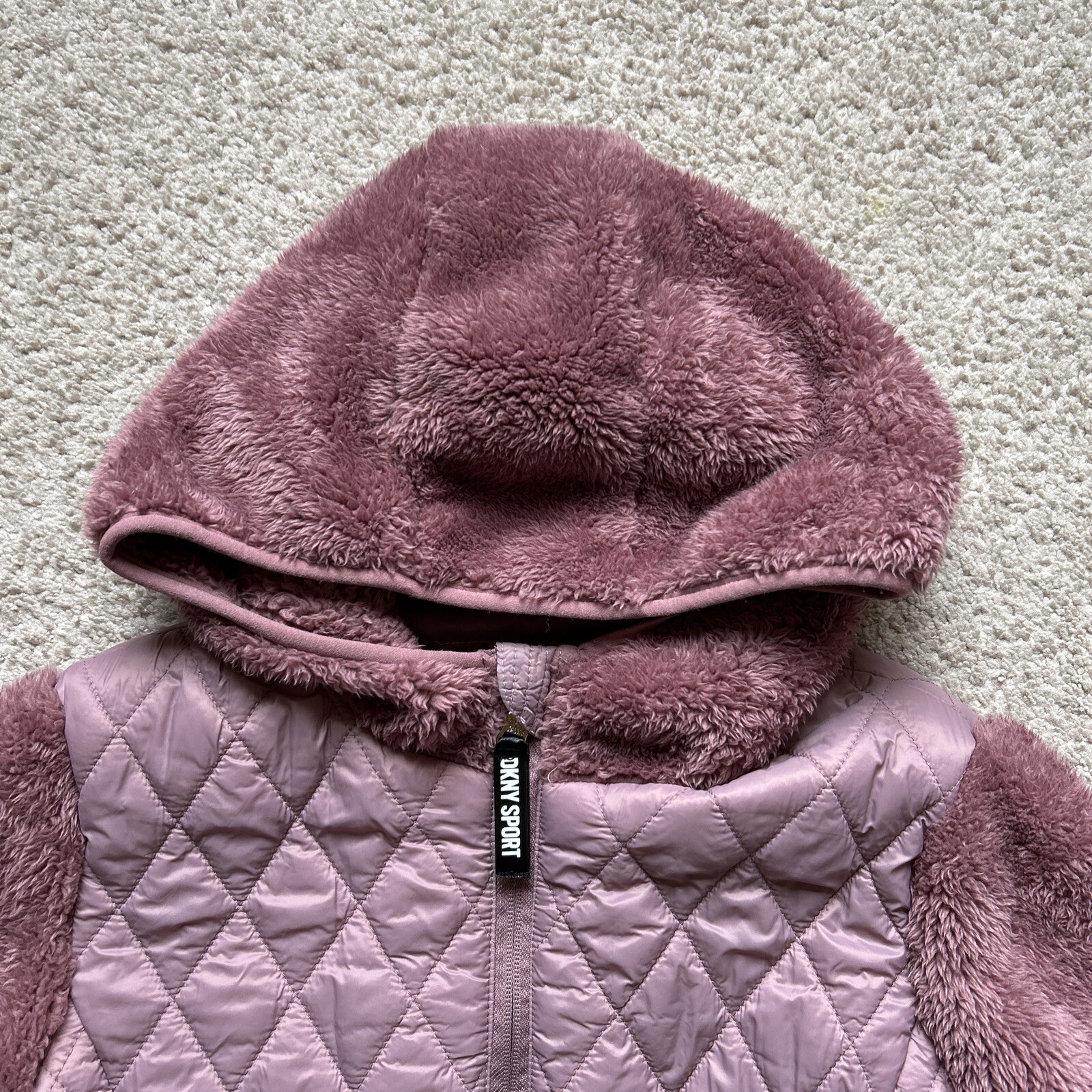 как выглядит DKNY Sports Kid Faux Fur Hooded Jacket Big Girls 14/16 Cameo Pink фото