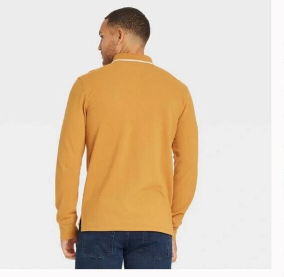 как выглядит Goodfellow Mens Long Sleeve Rugby Polo Shirt S Harvest Gold Mustard Stripe NEW фото