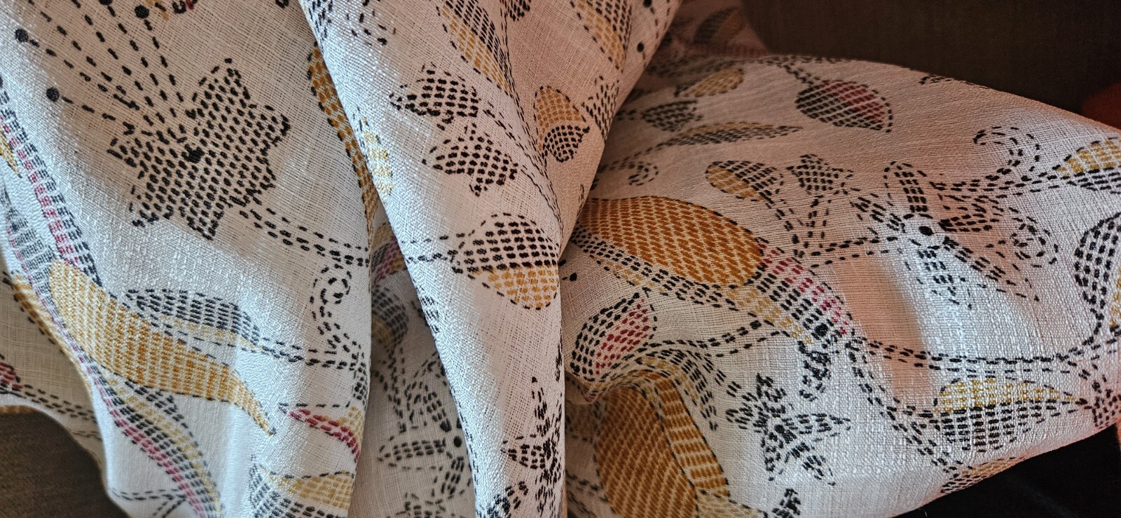 Stunning Vintage Silk Wrap Scarf Bird Zigzag Multicolor Ivory Gold Black