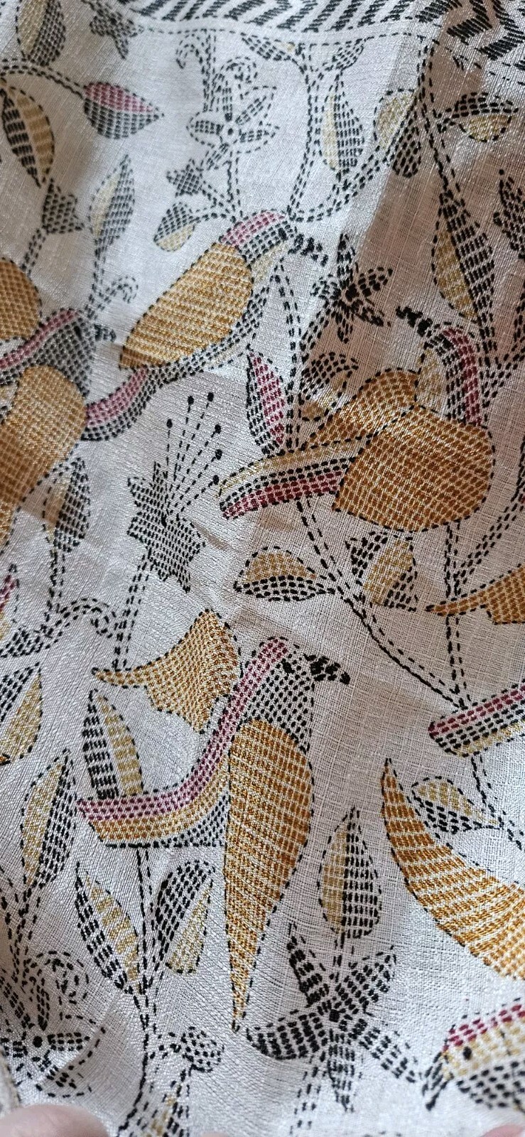 как выглядит Stunning Vintage Silk Wrap Scarf Bird Zigzag Multicolor Ivory Gold Black фото