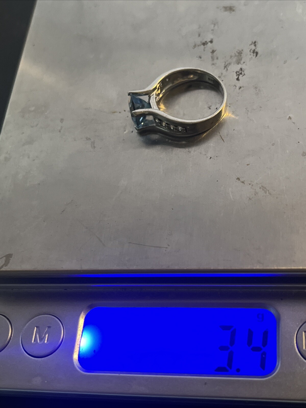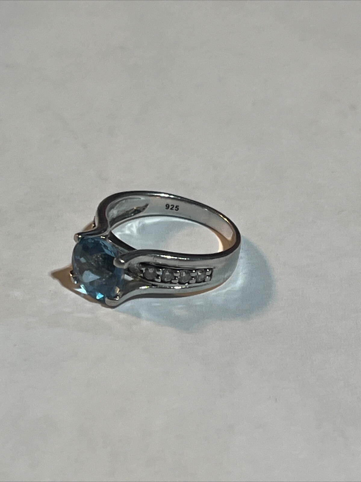 как выглядит VINTAGE STERLING SILVER 1.5CT BLUE FACETED MAIN STONE CLEAR STONES RING SZ 5.75 фото