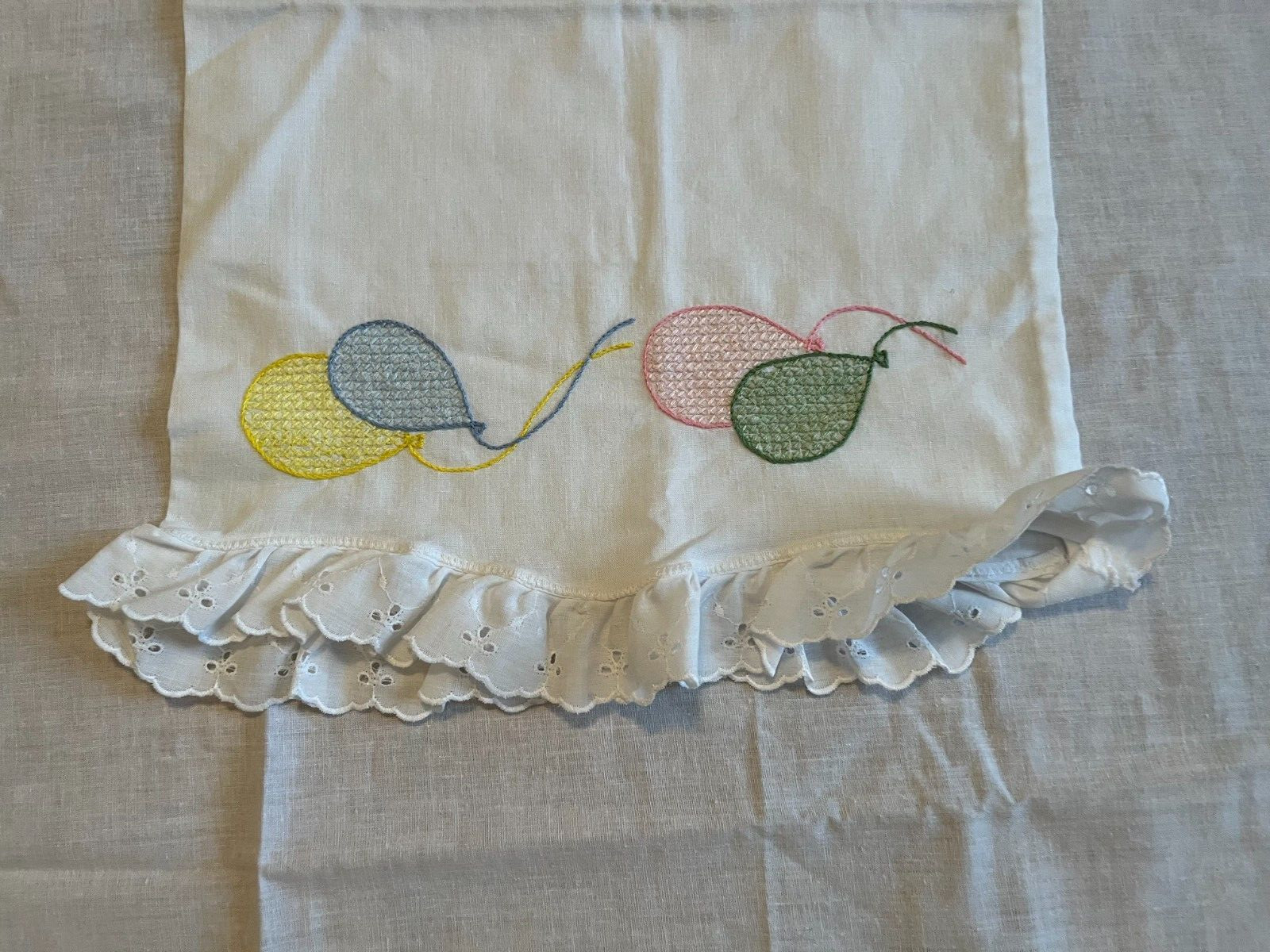 как выглядит Vintage Embroidered/ Cross stitch Baby Nursery Crib flat Sheet Pillowcase Set фото