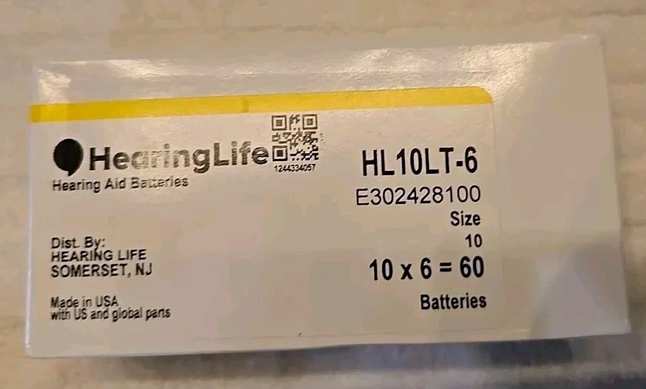 HearingLife Size 10 Hearing Aid Batteries 60 cells Exp 08/2027