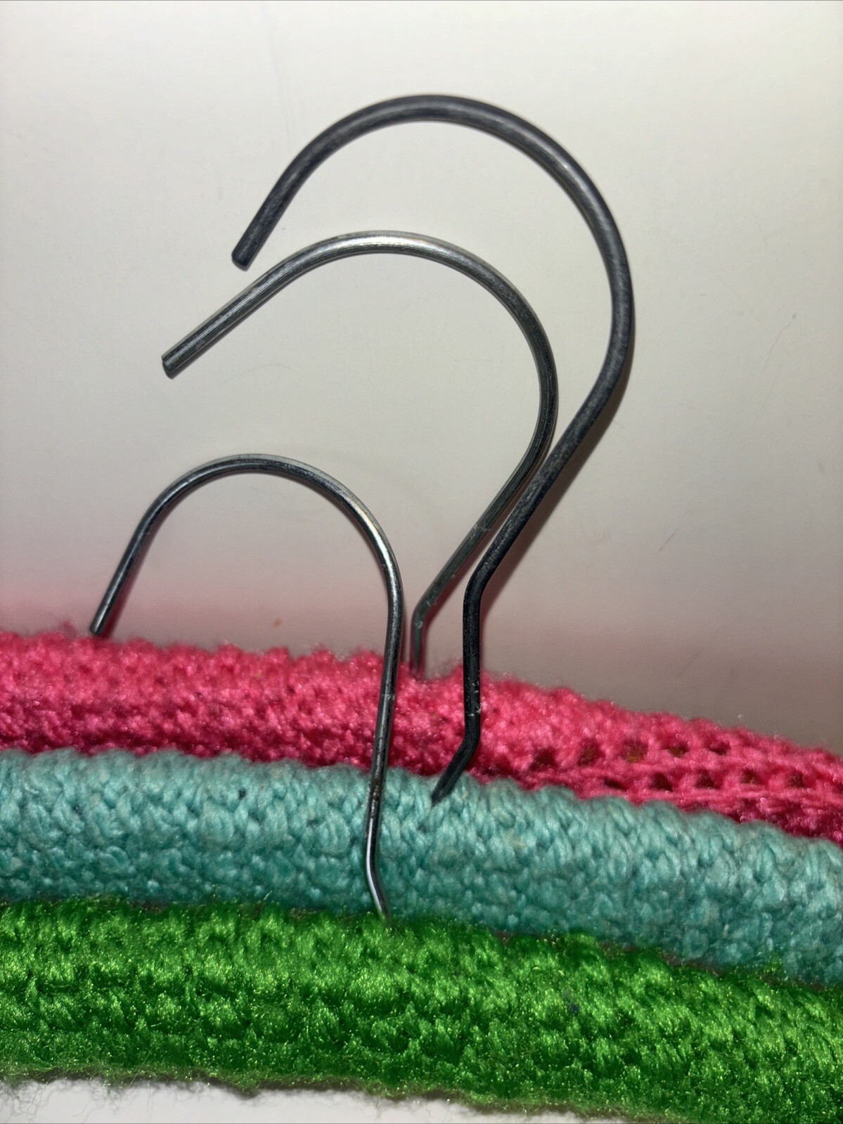 как выглядит 3 Vintage Knit Crochet Covered Clothes Hangers Pink Green Blue Multi Colors фото