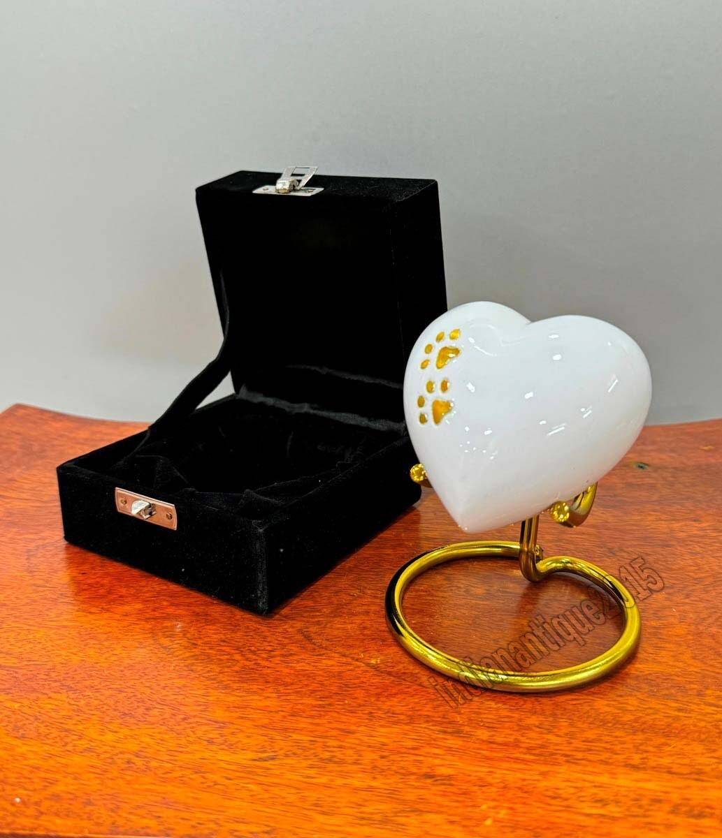 Small White Heart Keepsake urns with Box Stand Small Handcrafted Mini Memorial