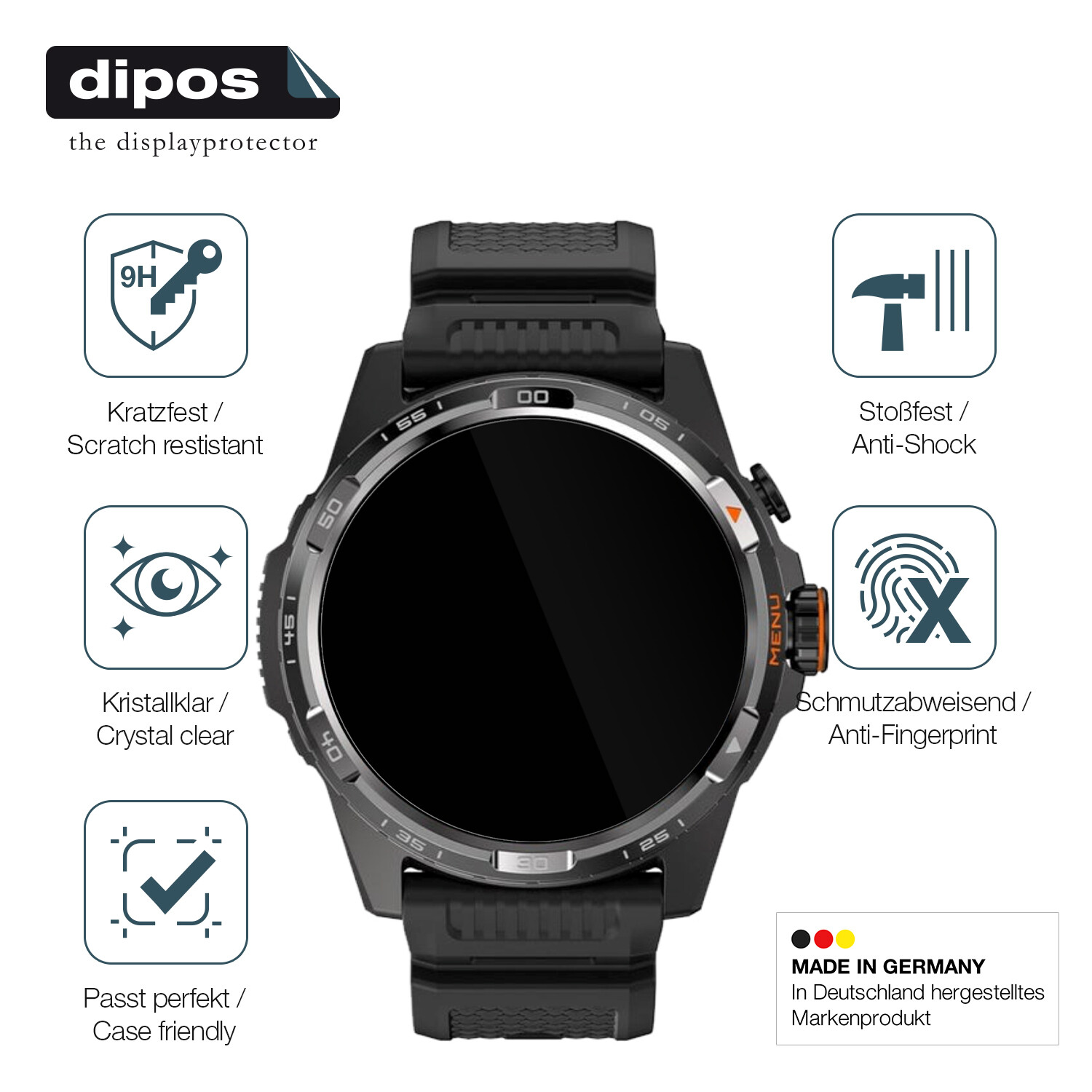 2x protective film for ticWatch Atlas flexible glass protection 9H dipos