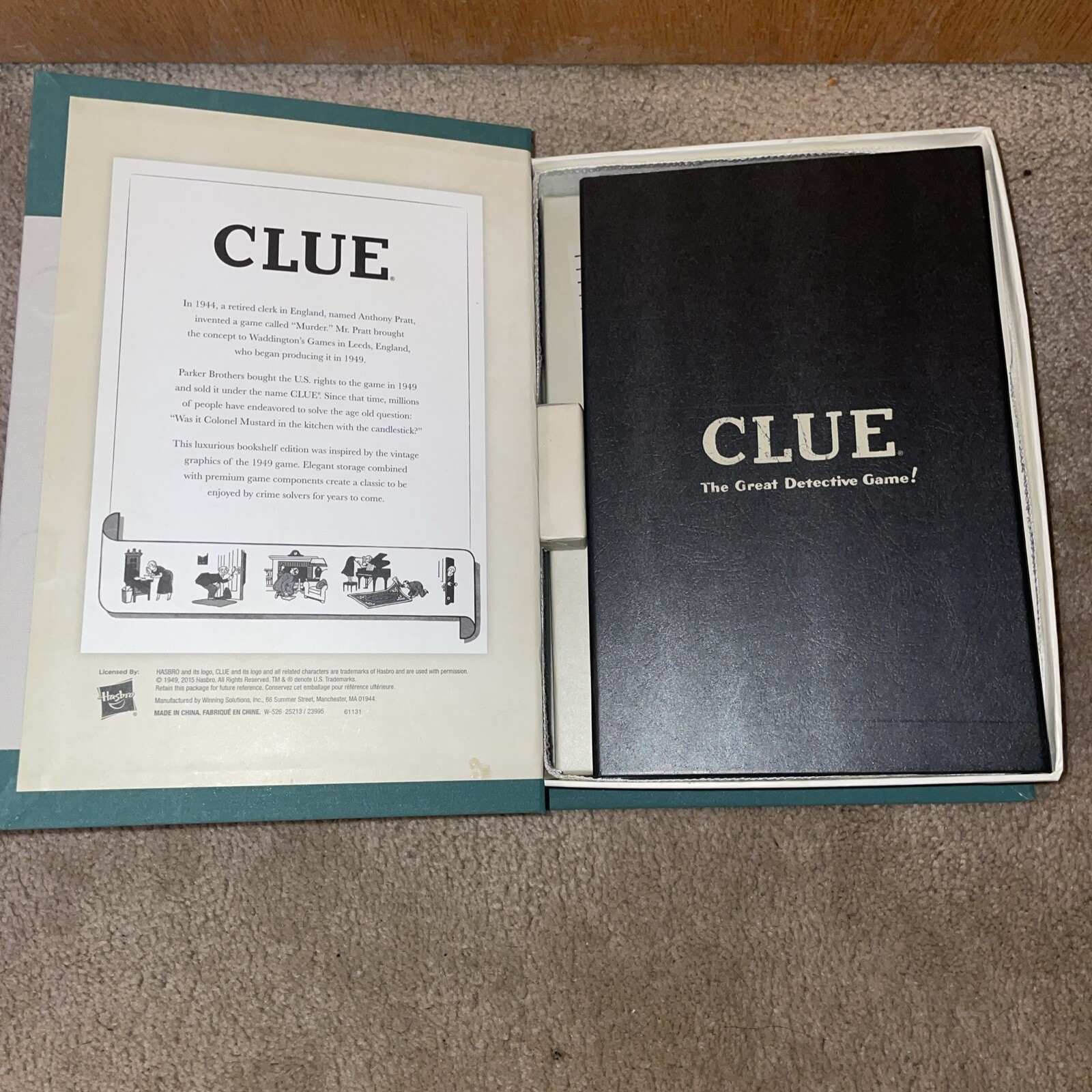 Clue Board Game Vintage Book Edition Linen Box 2015 Complete
