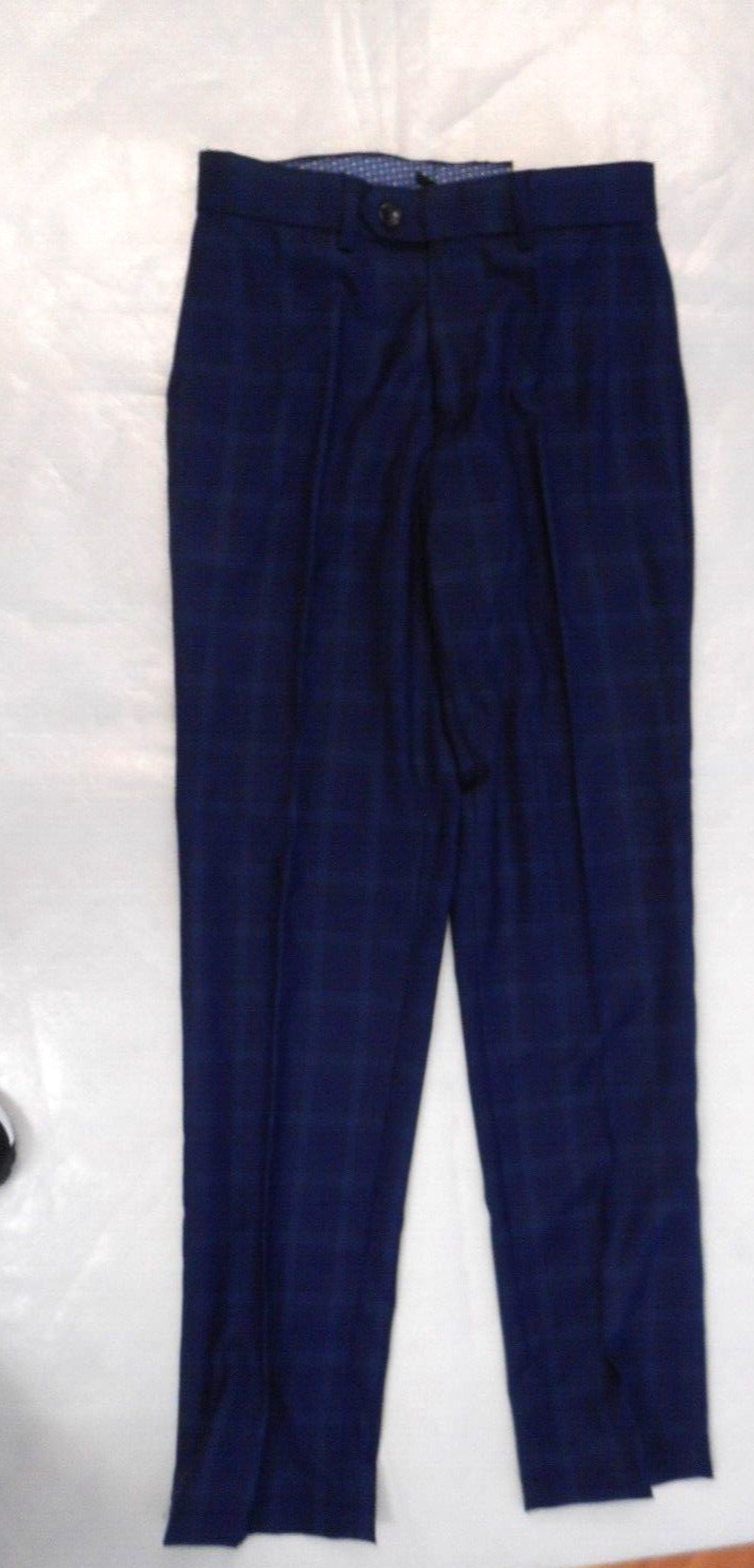 Boys T.O. Navy Plaid Jacket Pants 2PC. Suit Slim Classic Sizes 8 - 20