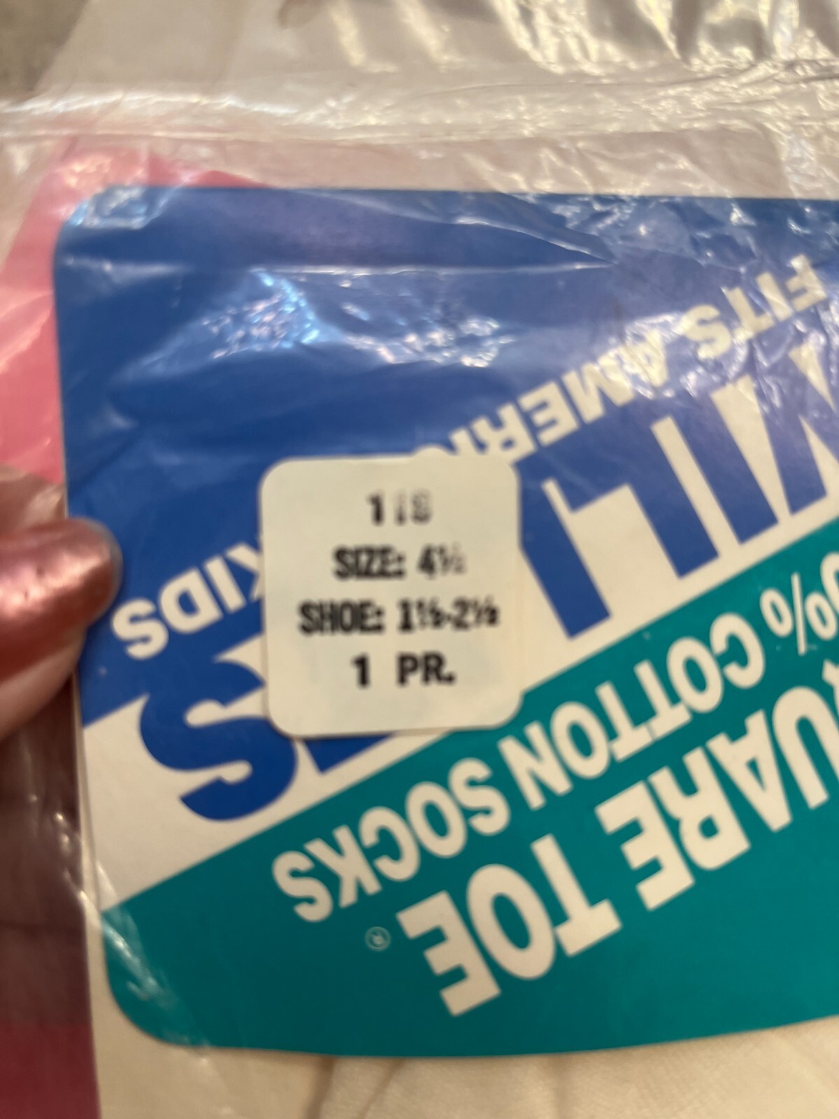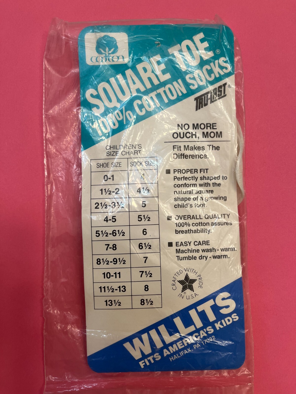 New Vintage 1 pair of Willits square toe 100 White cotton baby socks size 4.5