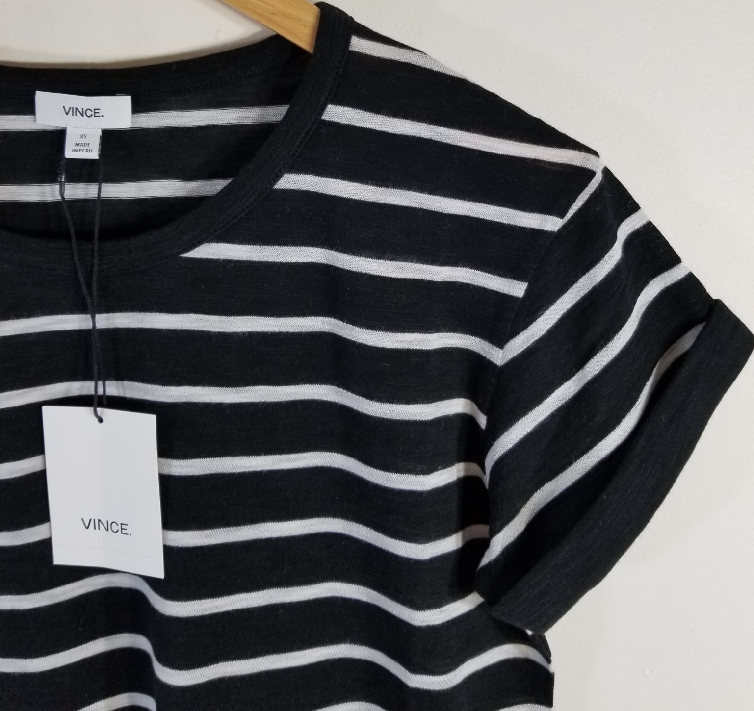 NWT Vince Feeder Stripe Pima Cotton Short Sleeve Tee Black-White Size XS, S 85