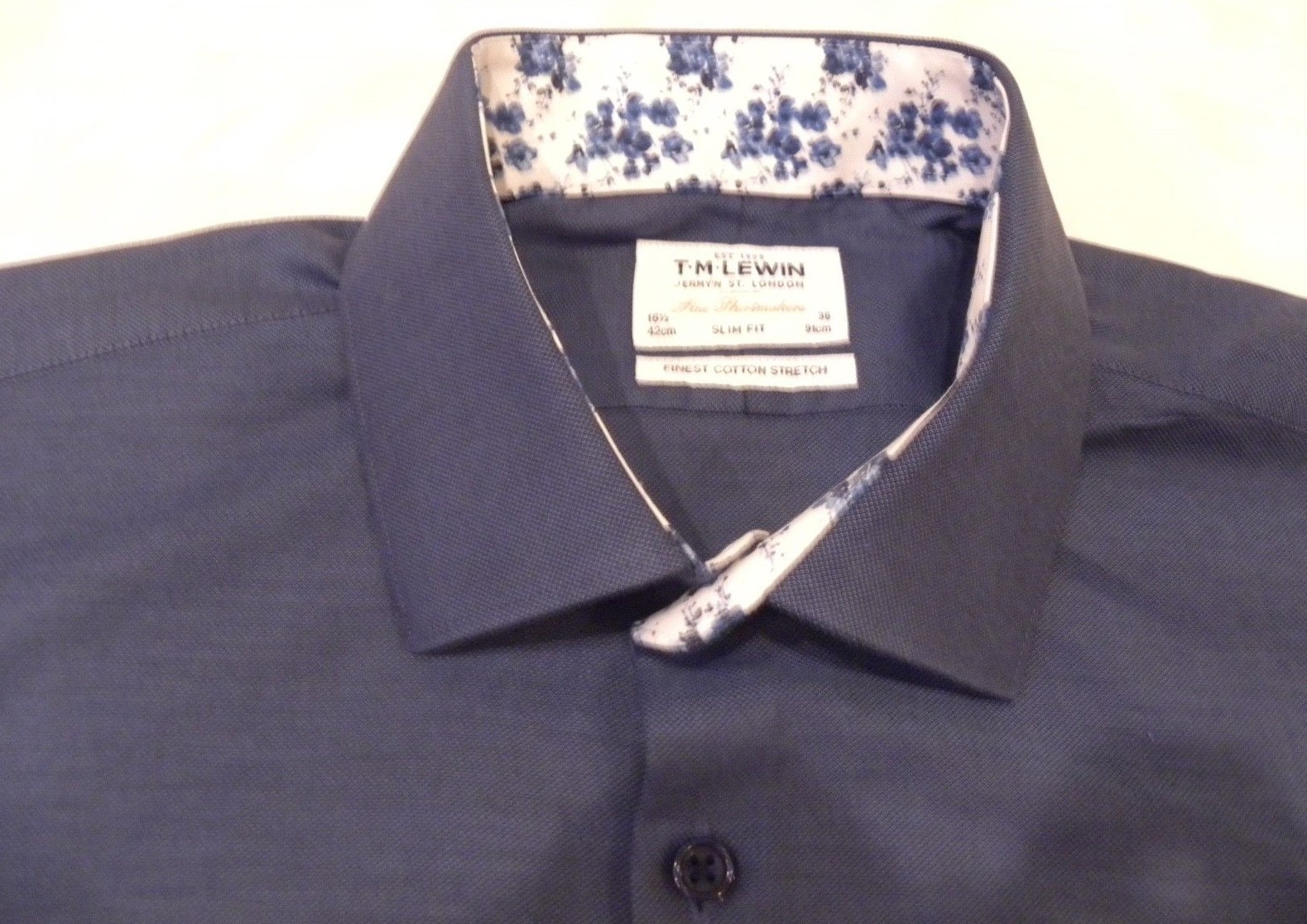 как выглядит T M Lewin L/S Button Up Blue Contrast Collar Cuffs Slim Fit Men Shirt Sz 16.5/36 фото