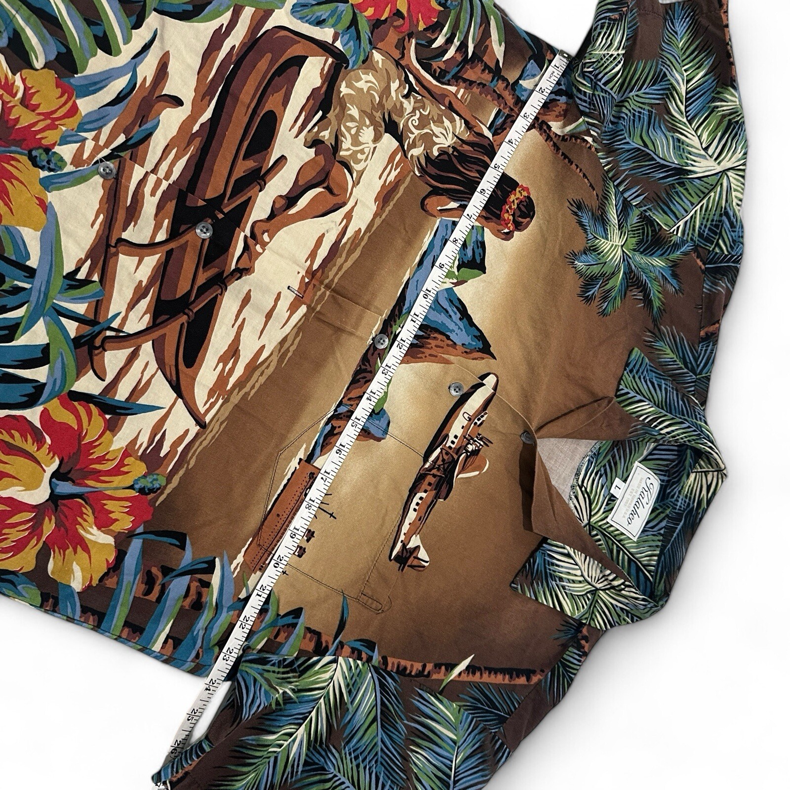 как выглядит Hawaiian Shirt War Plane Vintage WWll Bomber Fighter Polynesian Tan Made In HI фото