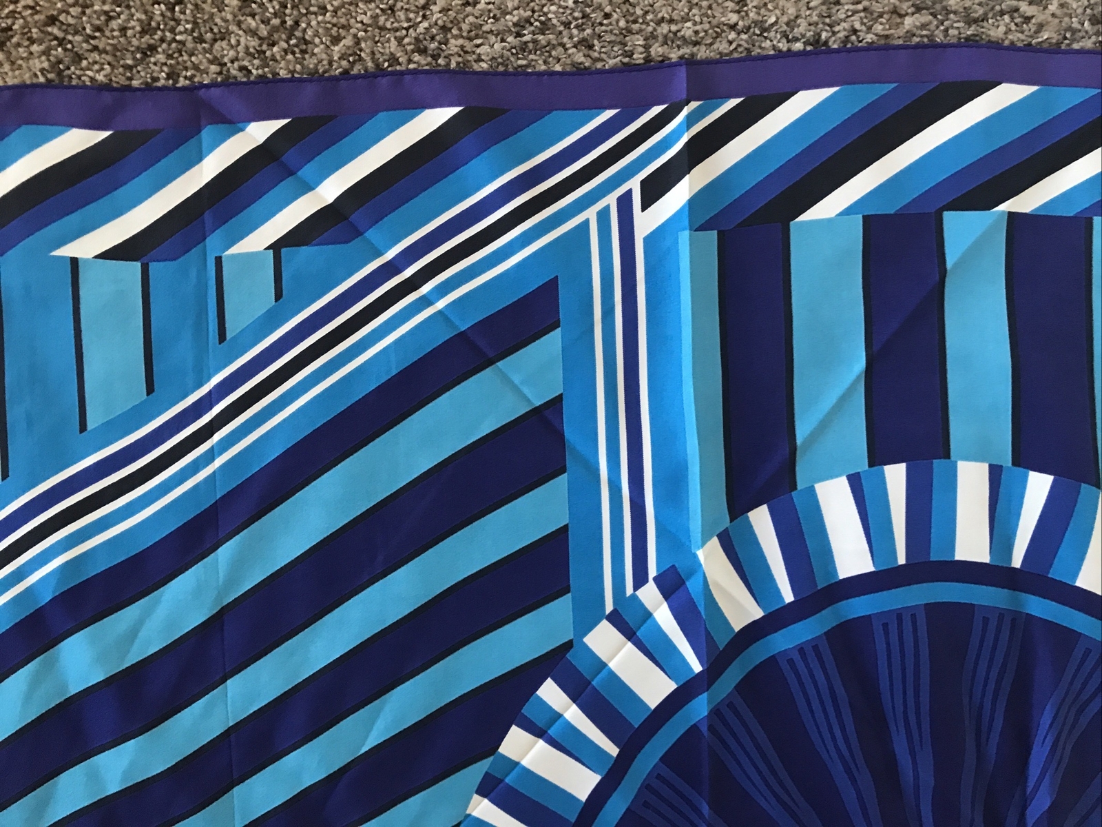 как выглядит Vintage Silk Scarf Square Abstract Blue White Purple Geometric Bold Stripes 35.5 фото