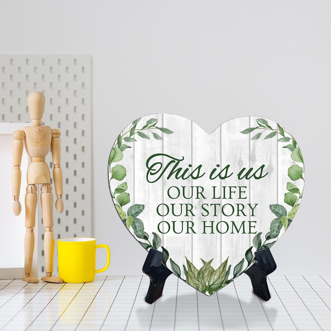 This is Us Our Life Our Story Our Home Heart Table Sign with Acrylic Stand 6x5