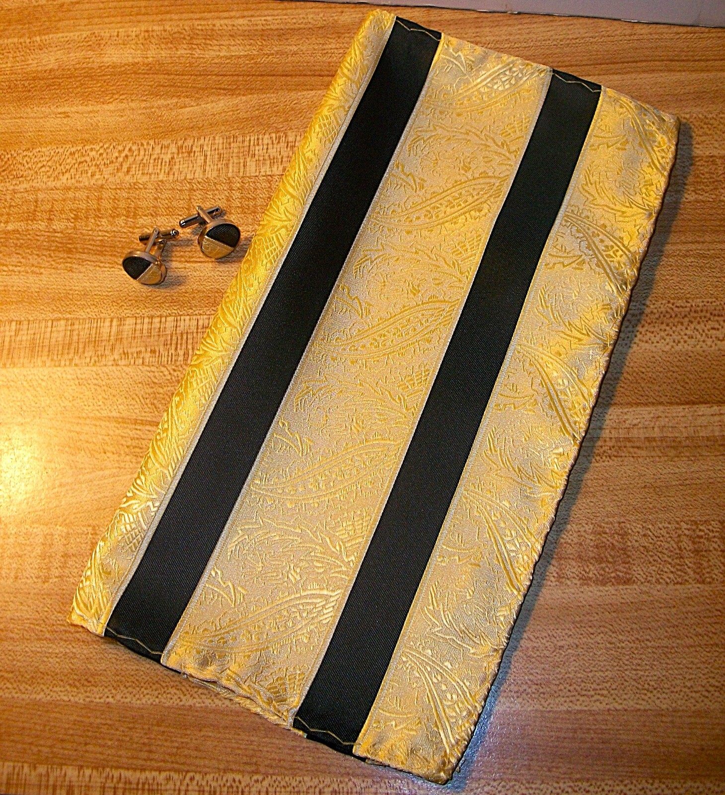 Vintage Men s Silk Jacquard Pocket Square w Matching Cuff Links Set-Gold Black
