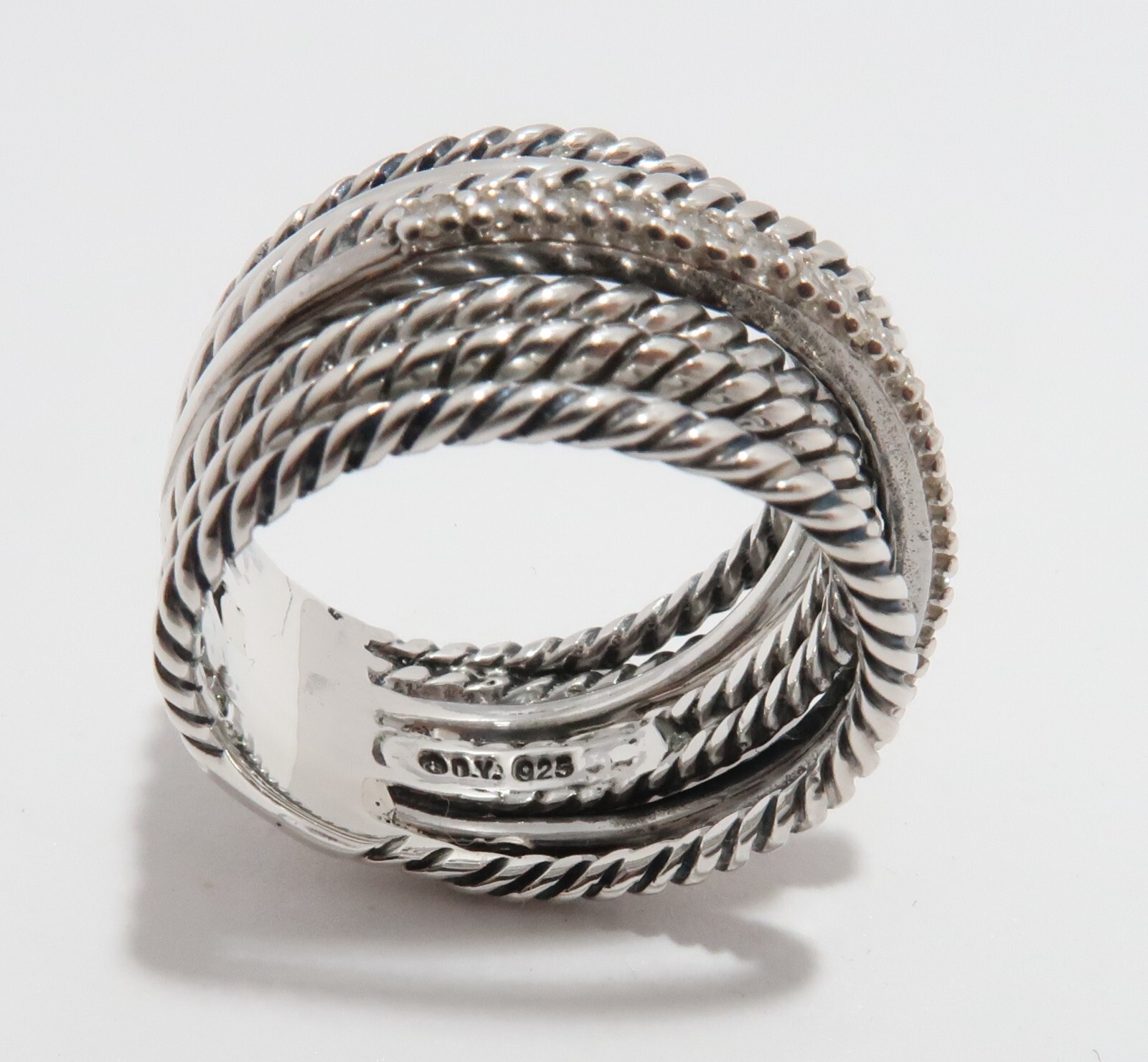 как выглядит David Yurman Sterling Silver Diamond Crossover wide Ring Size 7 фото