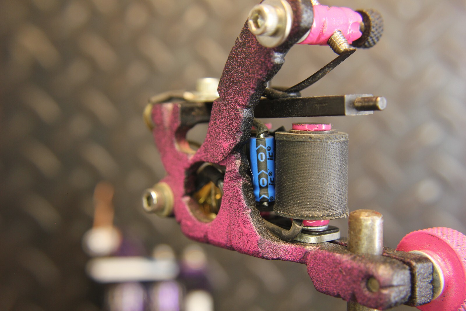 Hand-made Tattoo Machine pink and black carved with RCA adapter Shader