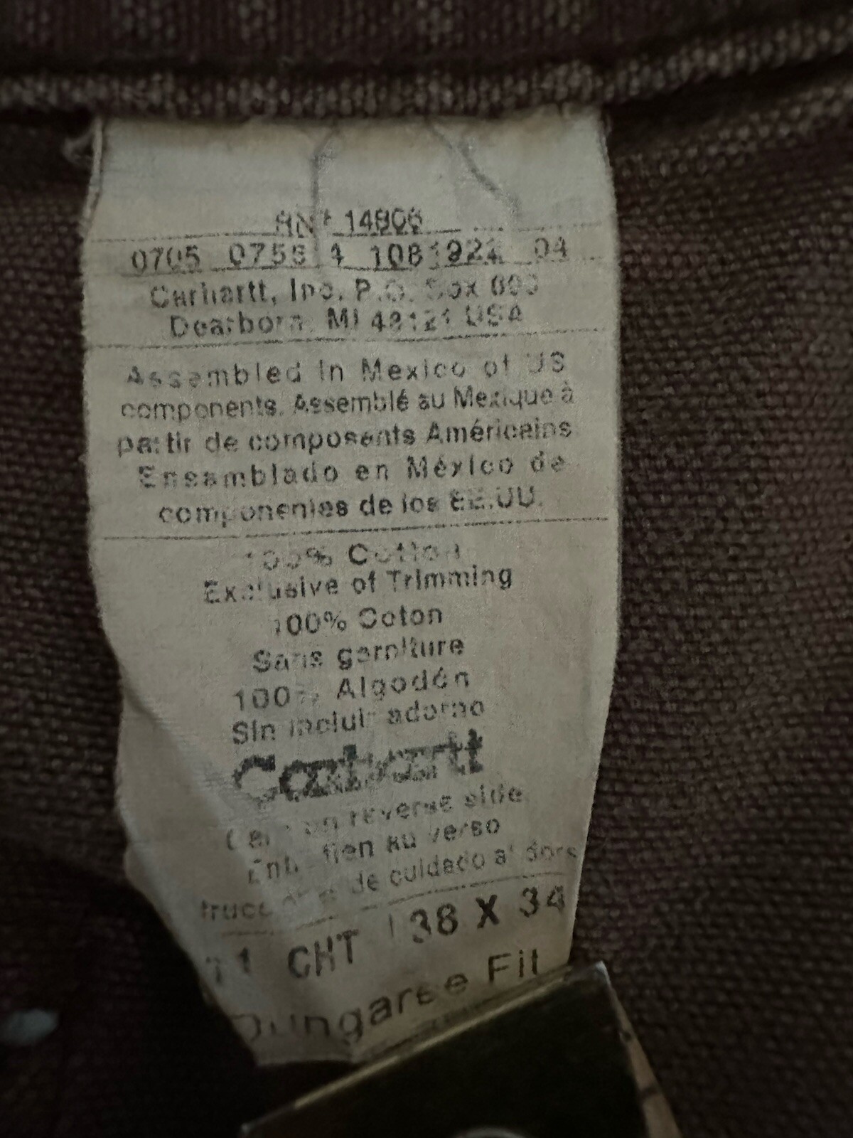 как выглядит Vintage Carhartt Dungaree Carpenter Pants Brown 38x34 14806 фото