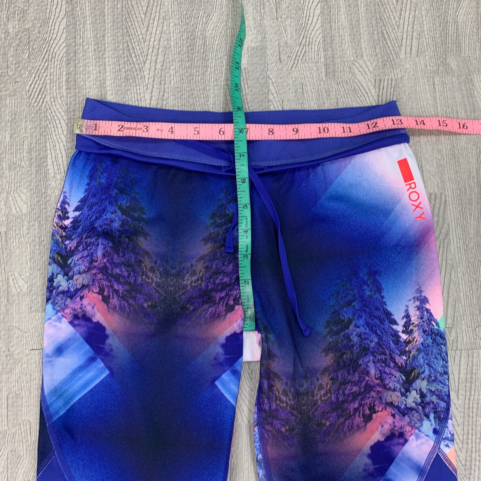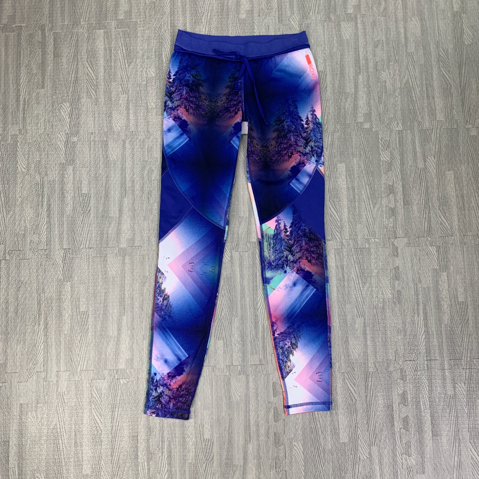 как выглядит Roxy Leggings Womens M Medium Multi All Over Print Drawcord Stretch Fitted фото