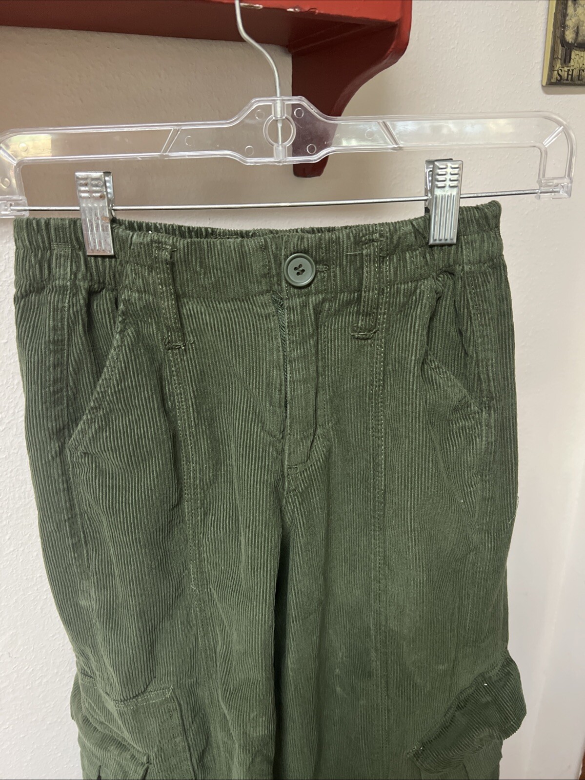Angel Kiss Green Corduroy Cargo Pockets Wide Leg Pants Elastic Waist Sz Jr 3/26